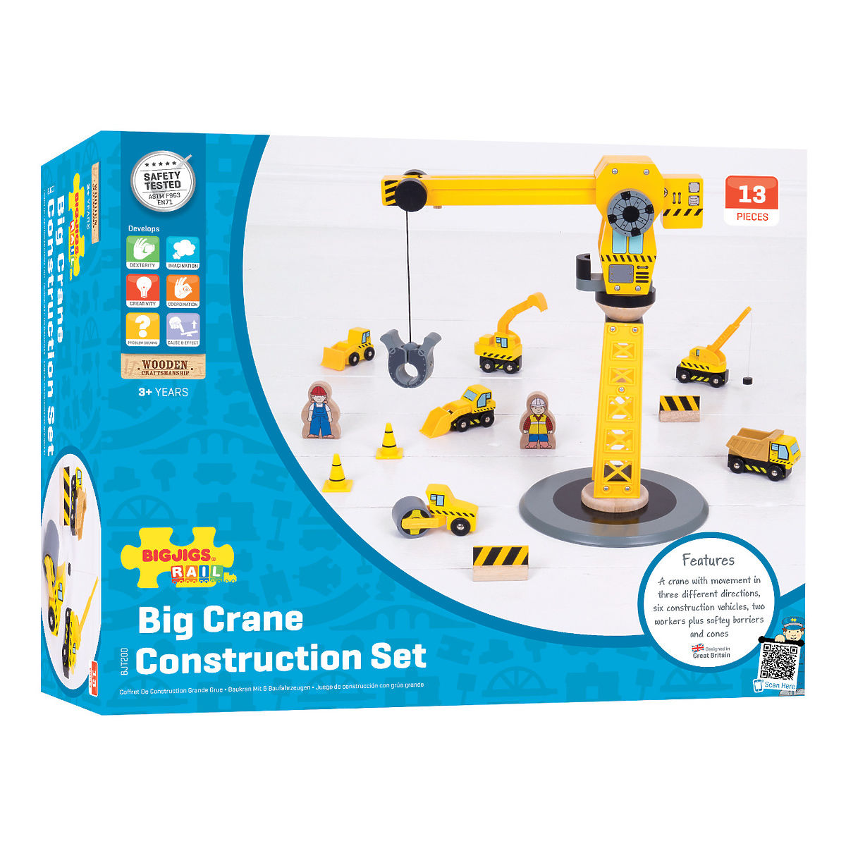 Idealny prezent dla każdego dziecka, które ma drewniany pociąg lub po prostu lubi maszyny budowlane! Ten zestaw zawiera duży dźwig, kilka różnych maszyn budowlanych, dwóch robotników, pachołki i barierki, a wszystko to idealne do pomysłowej zabawy. Dzieci nie mogą się nudzić z tą zabawką Główne cechy: Tory kolejowe Bigjigs Rail i ich akcesoria można łączyć ze wszystkimi innymi drewnianymi torami kolejowymi dostępnymi na rynku.