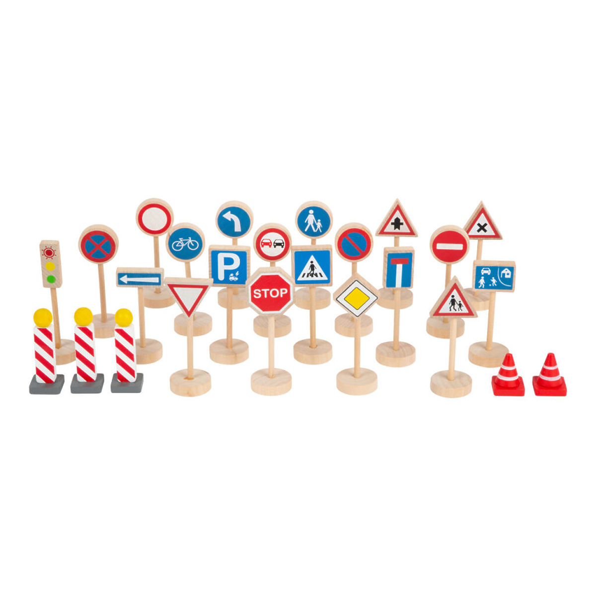 Jedź bezpiecznie! Te międzynarodowe znaki drogowe wykonane są z drewna. Będą doskonałym uzupełnieniem dla dywanu drogowego lub kolejki Twojego dziecka. Zabawka jest nie tylko piękna, ale także uczy dzieci czegoś nowego – znaczenia zasad ruchu drogowego. Graficznie dopasowane do Premium 7-częściowego parkingu (11676), stanowią dla niego idealne uzupełnienie. Główne cechy: 25 znaków międzynarodowe piktogramy