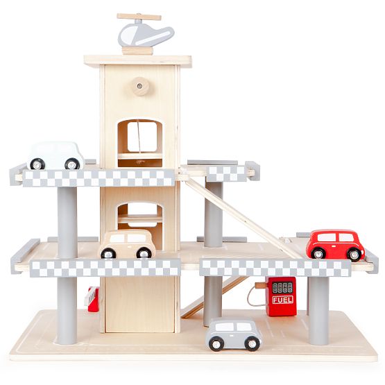Drewniany trzykondygnacyjny garaż z windą zachwyci wszystkich małych kierowców. Ten garaż oferuje dużo miejsca do zaparkowania wszystkich ulubionych przedmiotów.