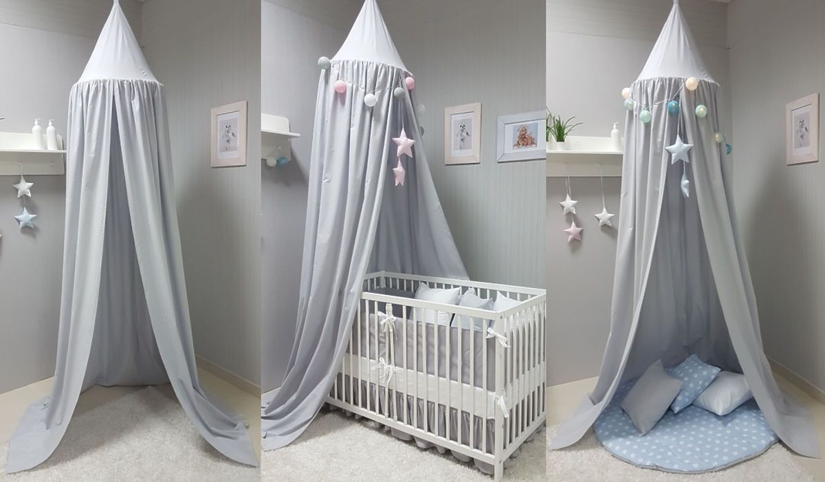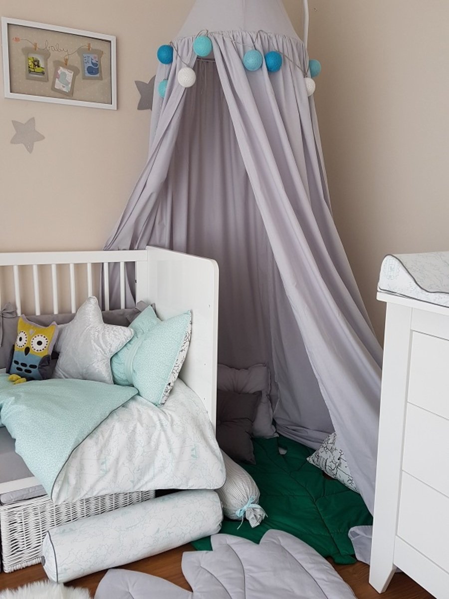 Wiszący jasnoszary baldachim dla dziecięcego pokoju. .. więcej