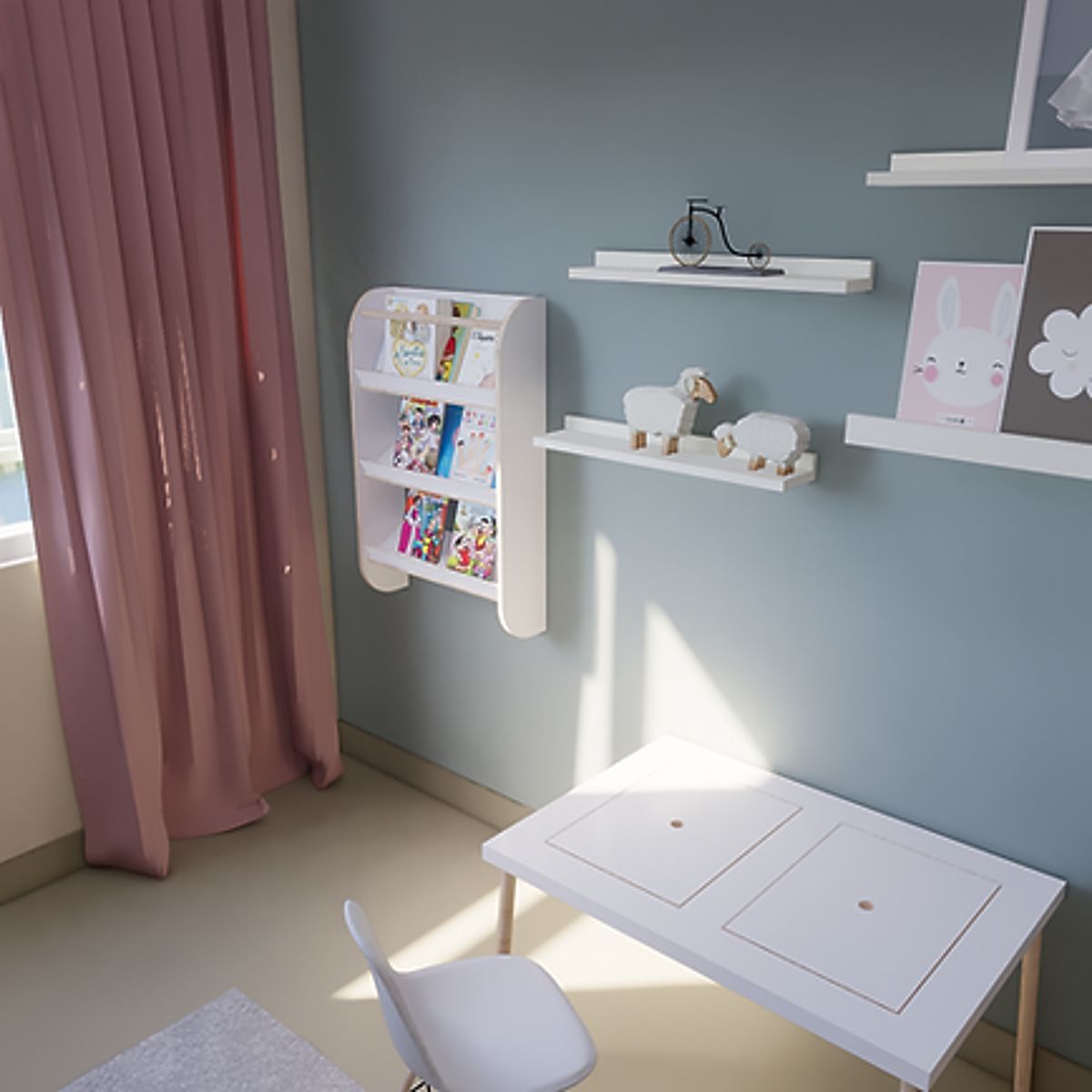 Biblioteczka jest idealnym miejscem, gdzie Twoje dziecko może przechowywać swoje ulubione książki, bajki i opowieści. Dzięki niskiej konstrukcji i trzem praktycznym półkom jest dostosowana do wzrostu dziecka, więc może ono samodzielnie sięgnąć po książki, bez pomocy dorosłych.