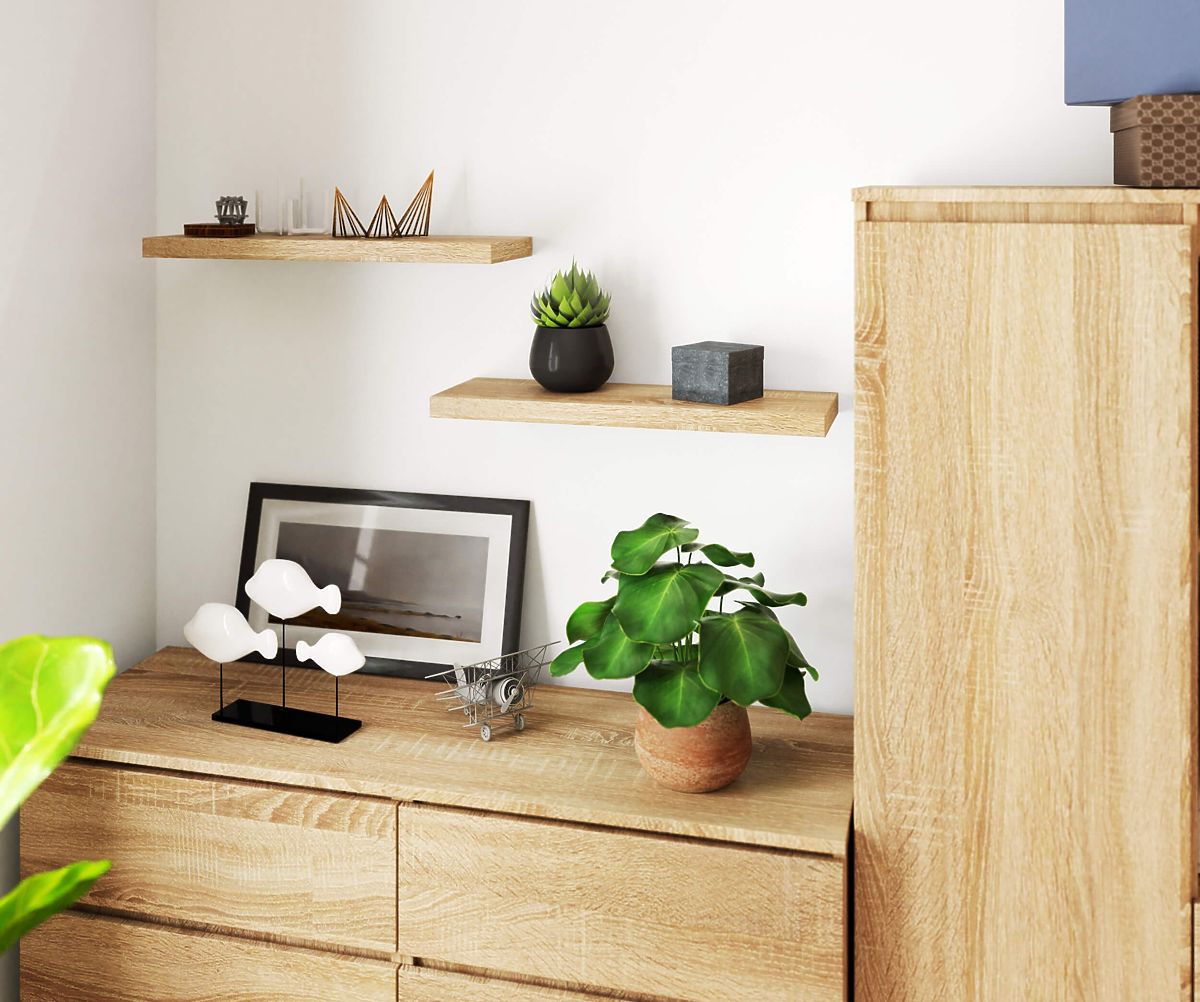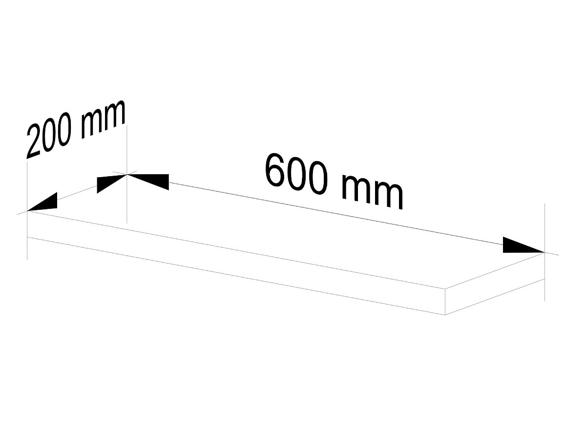 Półka meblowa 60 cm wykonana z płyty laminowanej odpornej na ścieranie. Krawędzie pokryte melaminą. W zestawie znajdują się niewidoczne uchwyty ścienne.