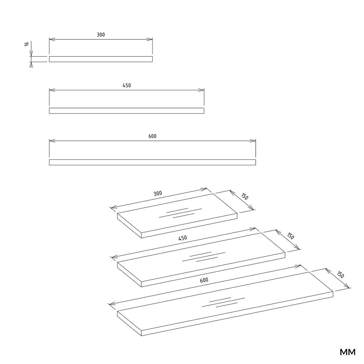 ZESTAW 3 PÓŁEK ŚCIENNYCH