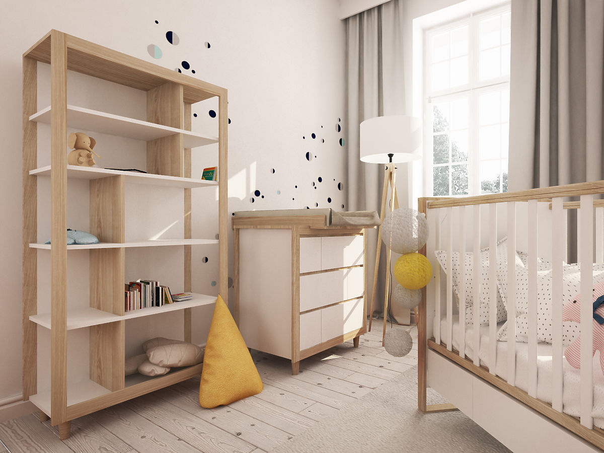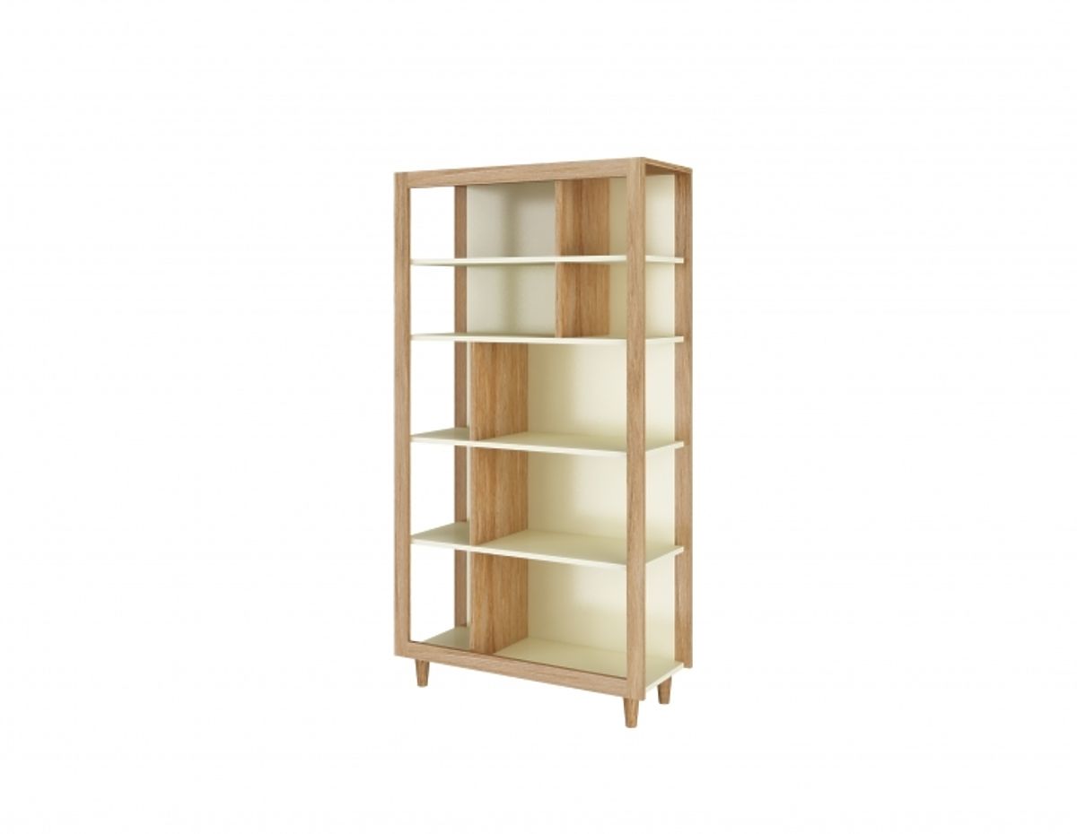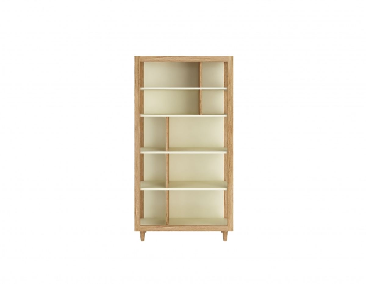 Plan regał jak przechowywać rzeczy, jak również nowoczesny element w jego wnętrzu. kombinacji dwóch kolorów i miękkie kolory kremowy i dąb wygląda bardzo ładnie i przynosi pokój elegancji i stylu.