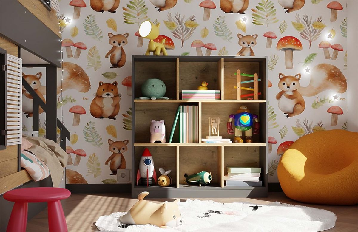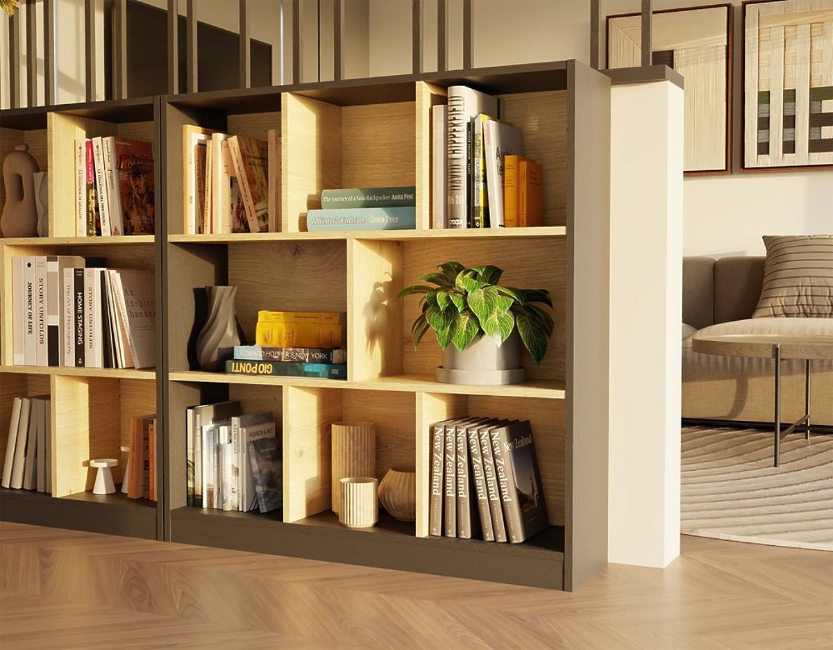 8 funkcjonalnych półek/przegród – idealnych na książki, dekoracje lub pudełka do przechowywania.