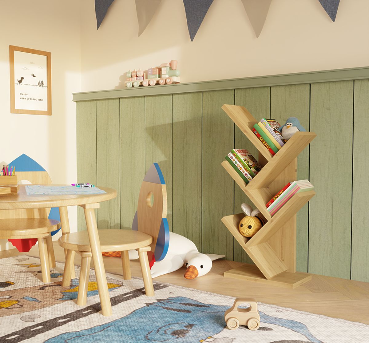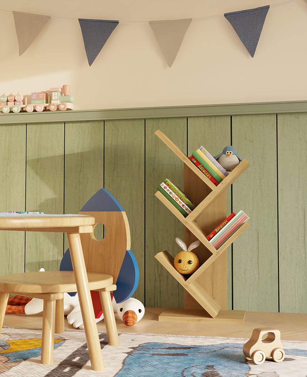 4 skośne otwarte półki – idealne na książki, segregatory, ozdoby czy zabawki