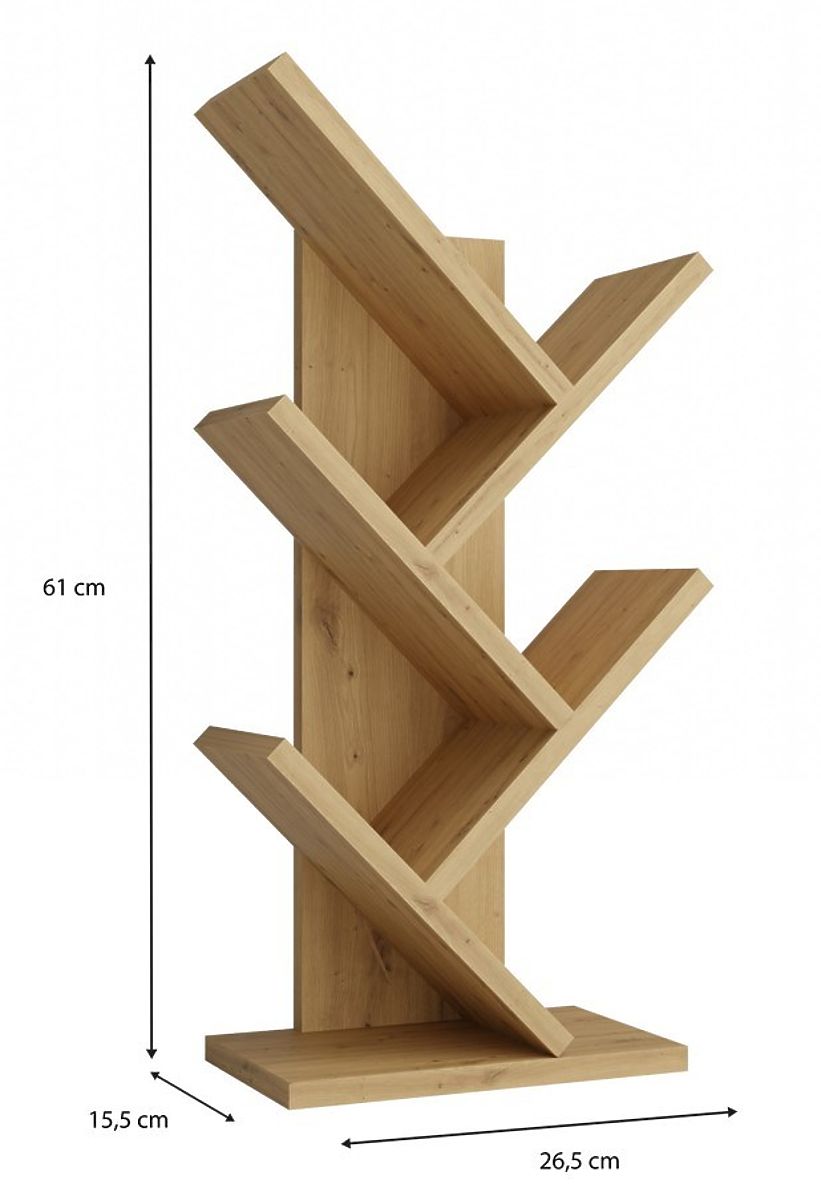 Dzięki kompaktowym wymiarom regał zmieści się nawet w niewielkich pomieszczeniach, stanowiąc stylowy i praktyczny element wyposażenia wnętrza.