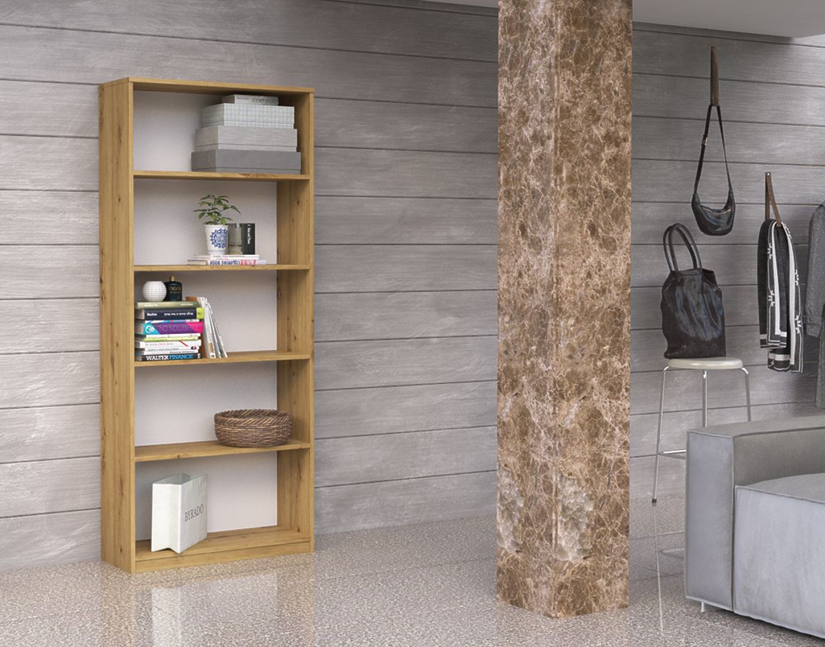 Klasyczny regał biurowy z płyty laminowanej w kolorze dąb artisan. .. więcej