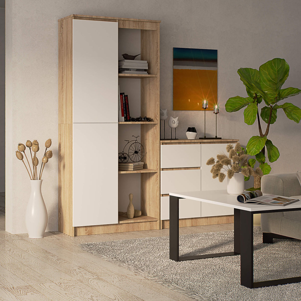Regał biurowy CLP z 8 półkami, kolor Dąb Sonoma i Biały. .. więcej