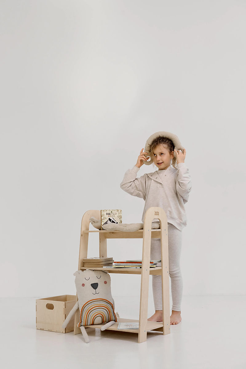 Otwarty regał SLIM S w naturalnym wykończeniu jest praktycznym i ponadczasowym dodatkiem do pokoju dziecięcego. Dzięki prostemu designowi i funkcjonalnemu rozwiązaniu tworzy przyjemne środowisko, które naturalnie wspiera dzieci w rozwijaniu miłości do czytania i ich wyobraźni. Regał jest zaprojektowany tak, aby dzieci miały książki zawsze w zasięgu ręki. Otwarta konstrukcja półek umożliwia łatwy wybór i odkładanie książek, co prowadzi do rozwoju samodzielności i poczucia porządku. Wysokość regału jest dostosowana do dzieci, dzięki czemu mogą go wygodnie używać bez pomocy dorosłych. Naturalny wygląd łatwo komponuje się z każdym wnętrzem pokoju dziecięcego.