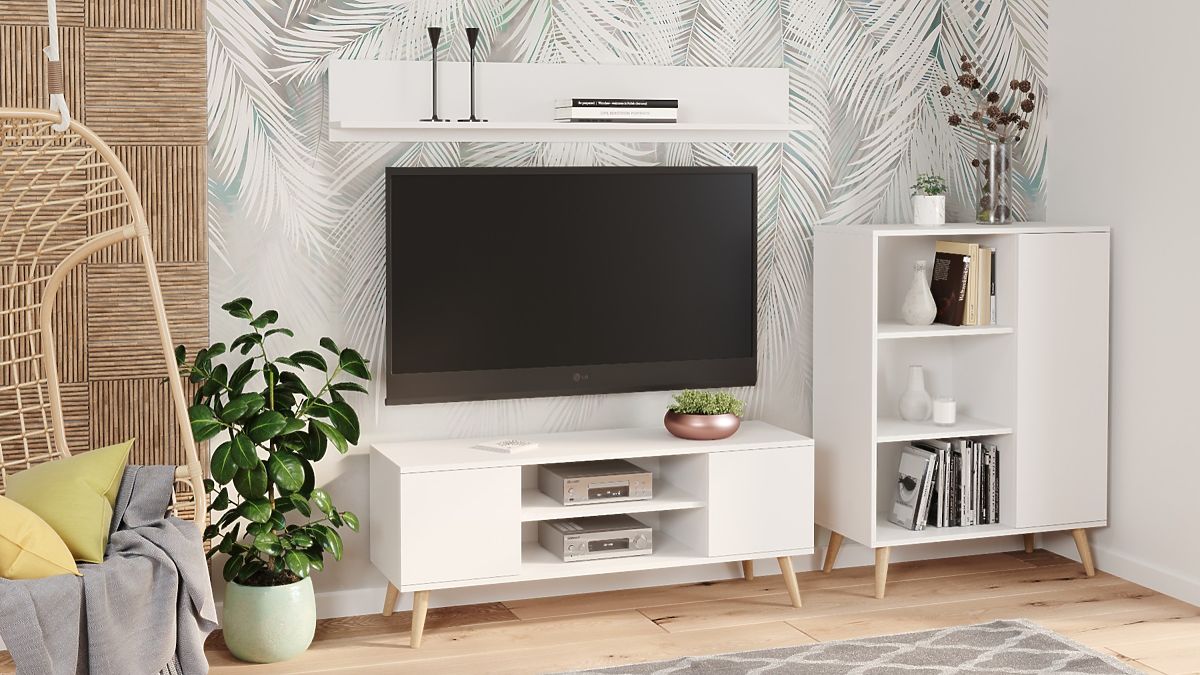 Funkcjonalny regał w stylu skandynawskim z przestronnymi półkami. .. więcej