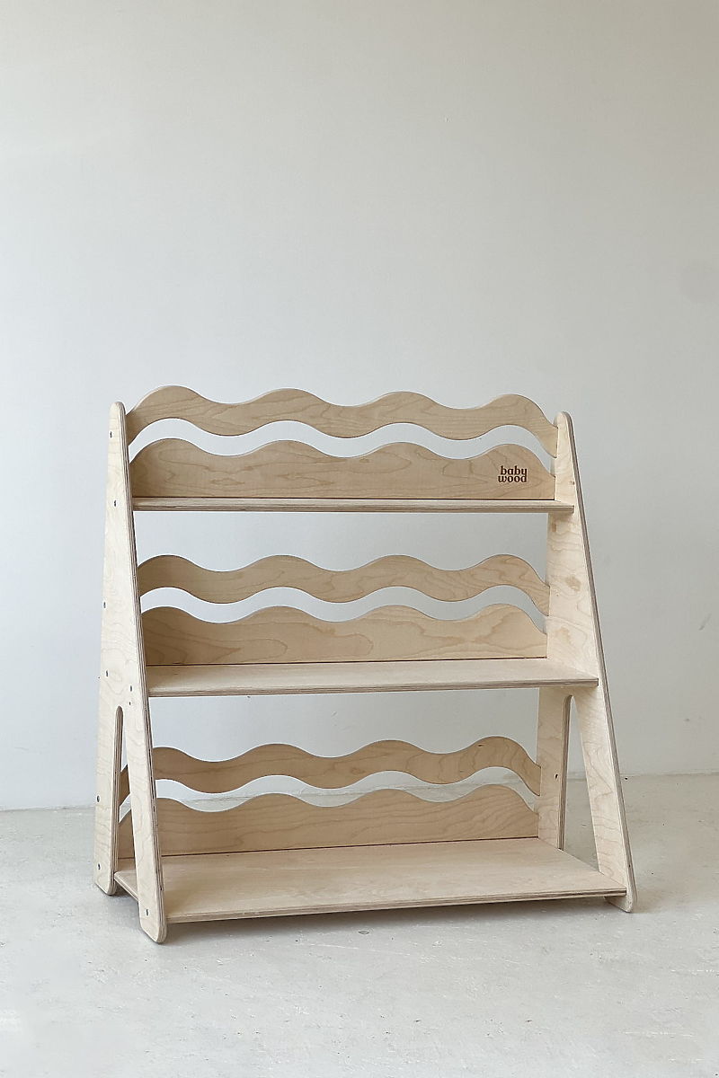 Regał ścienny WAVE M w naturalnym kolorze to praktyczna i dekoracyjna biblioteczka do pokoju dziecięcego, zaprojektowana w duchu Montessori. Pomaga dziecku utrzymać porządek i jednocześnie wspiera jego samodzielność – wszystko, czego dziecko potrzebuje, jest łatwo dostępne bez pomocy dorosłych. Trzy otwarte półki umożliwiają przechowywanie książek, zabawek i wszystkich małych skarbów dziecka. Faliste przednie listwy nadają regałowi lekkości i wizualnie łagodzą prostą formę. Naturalne materiały i bezpieczne wykonanie gwarantują stabilność i długą żywotność, jednocześnie zapewniając dzieciom bezpieczną i przejrzystą przestrzeń do zabawy.