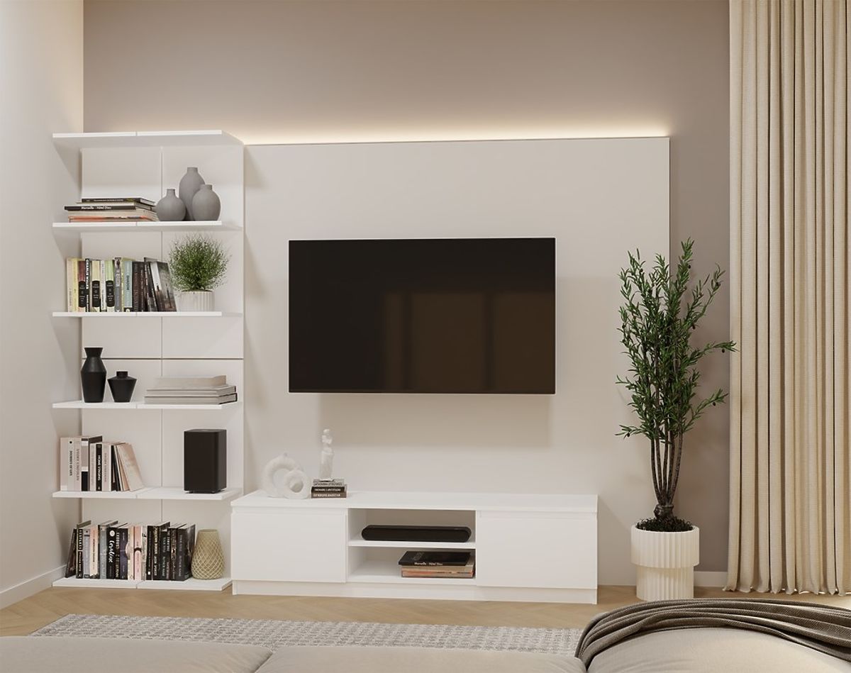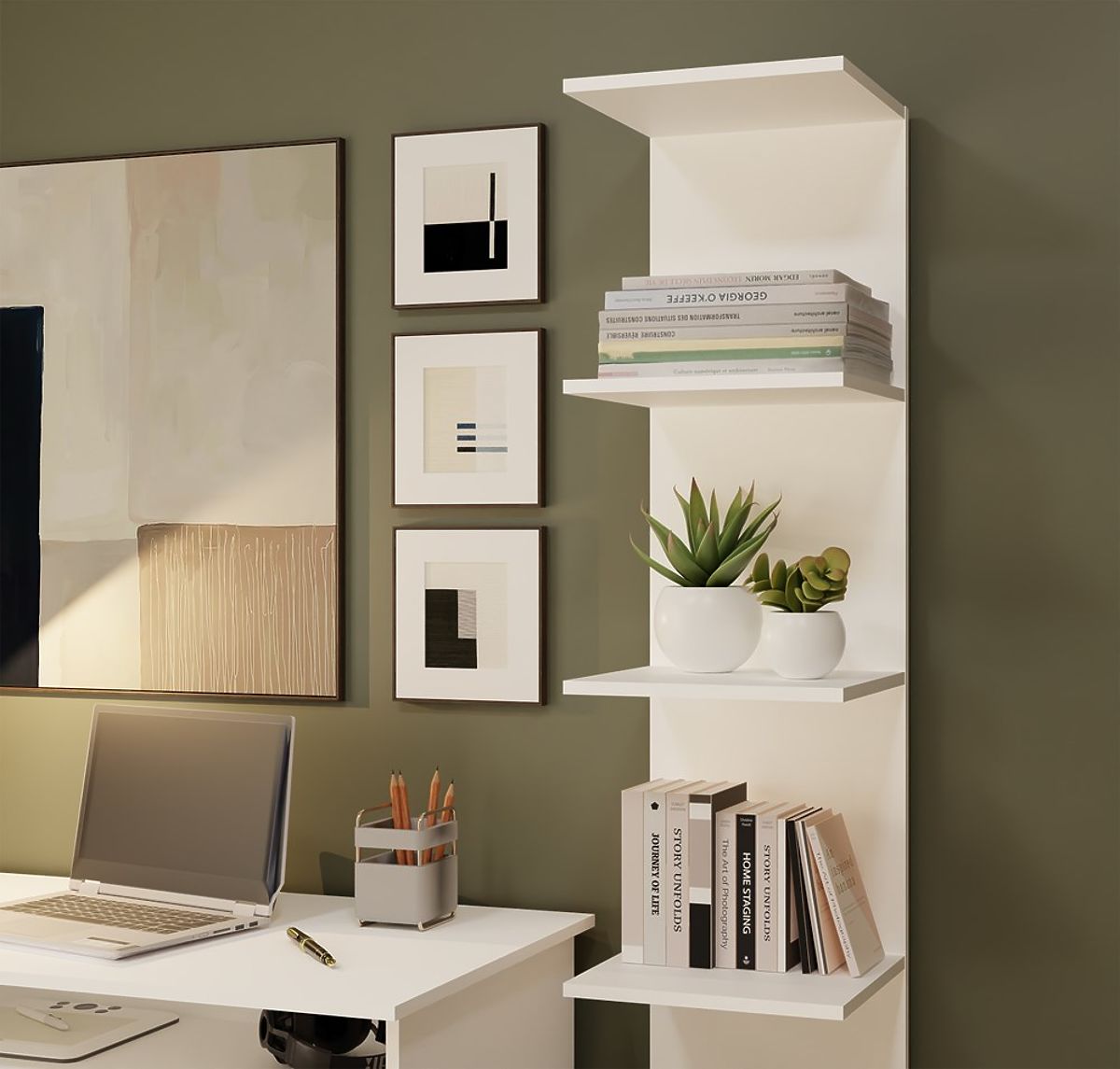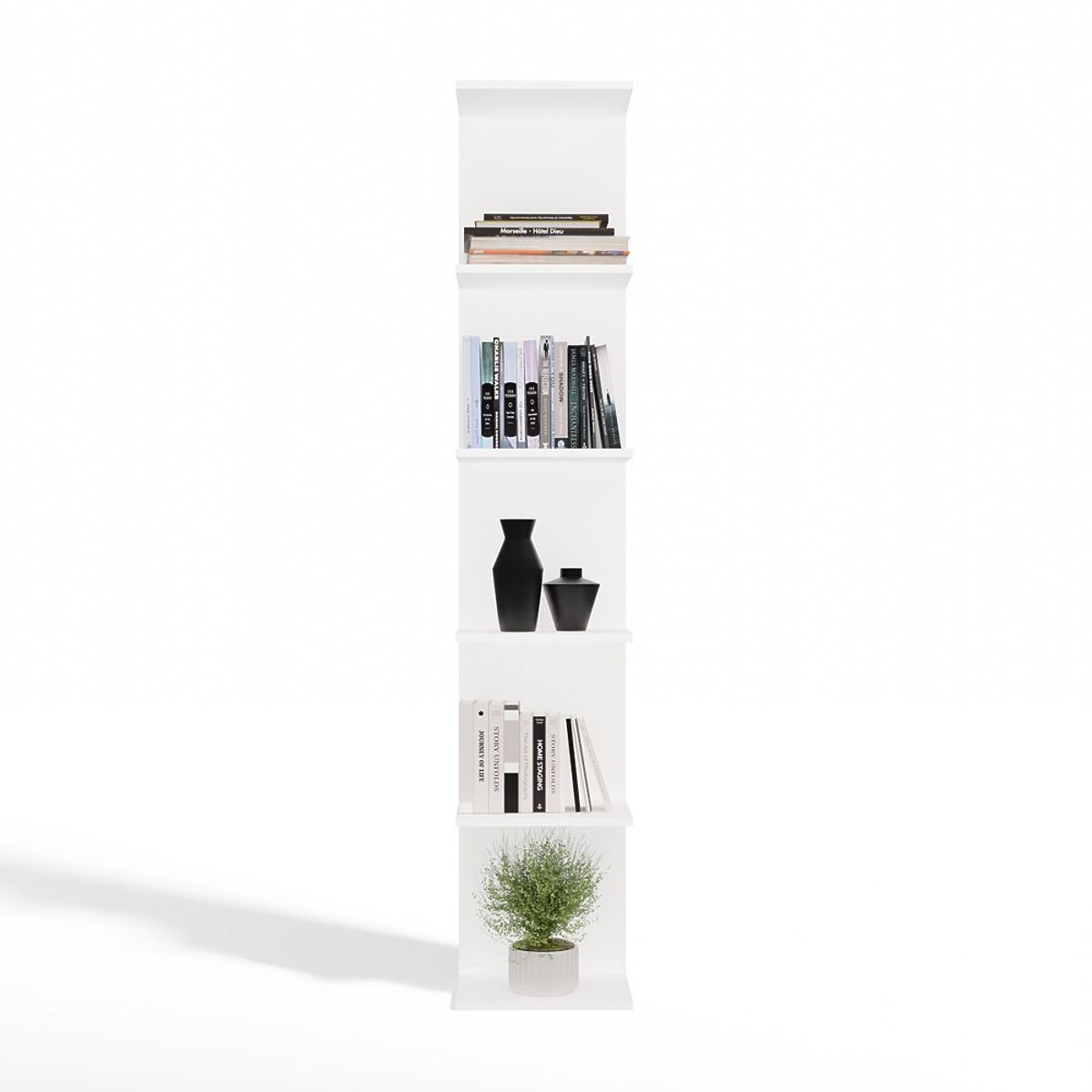 Regał 6P to minimalistyczny i funkcjonalny mebel, który doskonale pasuje do salonu, biura, pokoju studenckiego lub domowej biblioteki. Dzięki lekkiej, nowoczesnej formie i neutralnej białej barwie łatwo dopasować go do wielu aranżacji wnętrz.