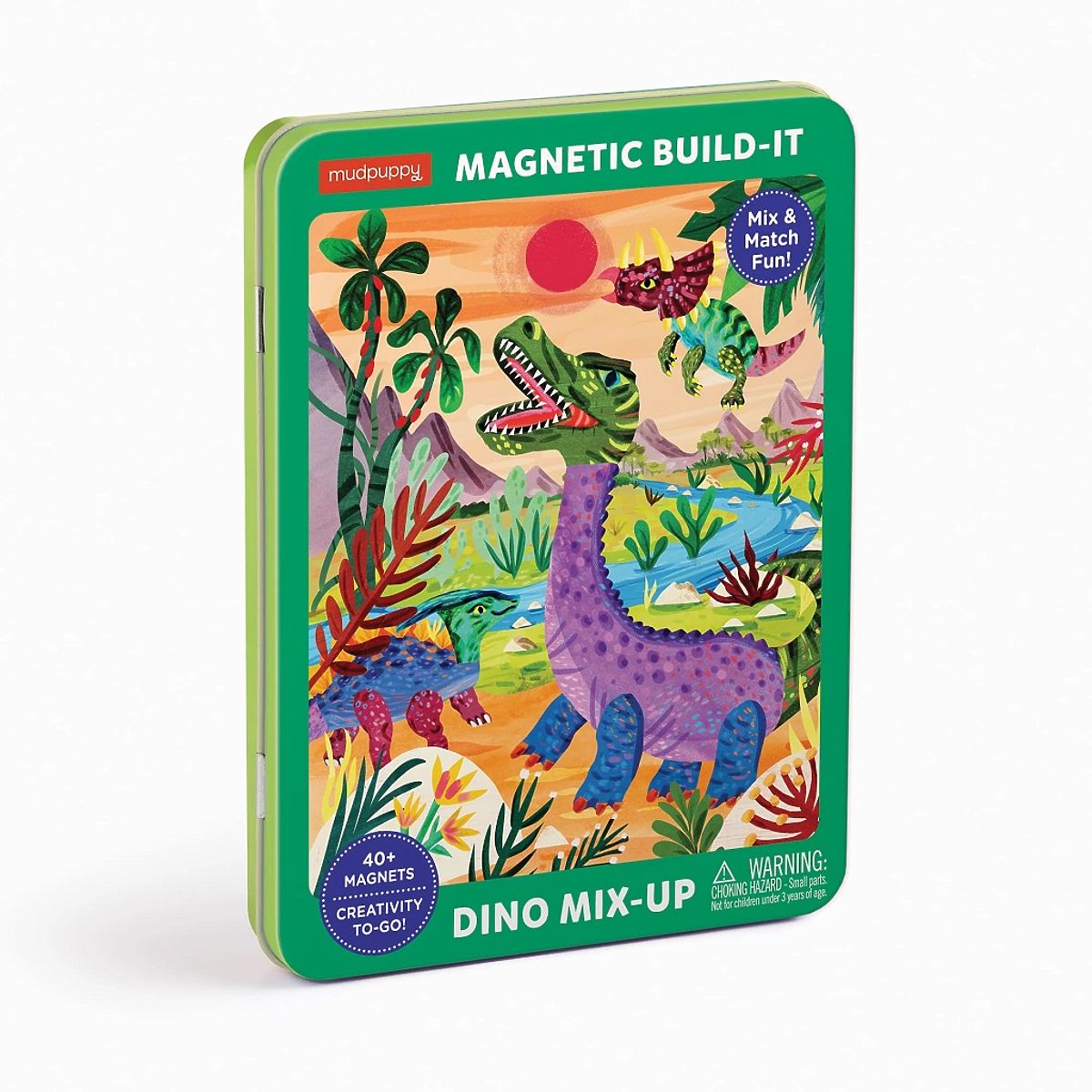 Zestaw magnetyczny zawiera 2 ilustrowane sceny i ponad 40 różnych magnesów do tworzenia własnych wyimaginowanych dinozaurów. Gra oferuje godziny pomysłowej zabawy. Opakowanie łatwe do czyszczenia. Doskonała również jako zabawka podróżna. Główne cechy: świetna zabawka podróżna w metalowym pudełku, nadrukowana nietoksycznymi farbami, 40 sztuk różnych magnesów, 2 ilustrowane sceny