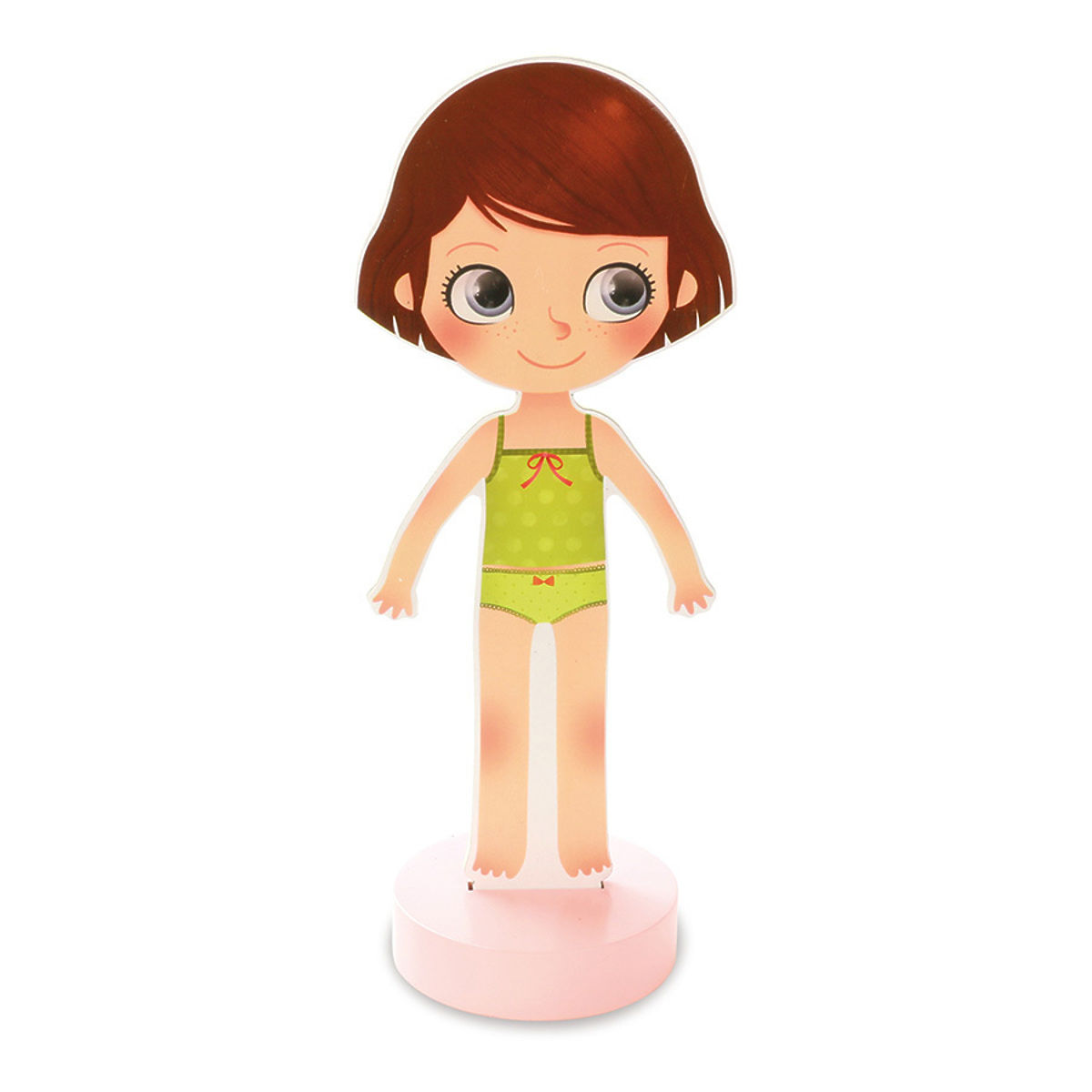 Ubierz Chloe w różne stroje! Drewniana lalka magnetyczna o wysokości 22 cm z 37 magnetycznymi ubrankami i akcesoriami. Główne cechy: 1 figurka na drewnianej podstawie o wysokości 22 cm, zawiera 37 sztuk odzieży i akcesoriów, wykonana ekologicznie, przyjazna dla środowiska