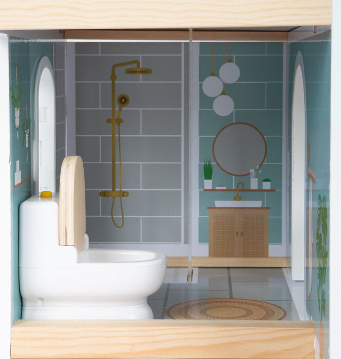 Ten nowoczesny domek dla lalek ma otwartą przednią stronę z pięknymi artystycznymi detalami i nowoczesnym wnętrzem. Zawiera kuchnię połączoną z jadalnią, sypialnię, łazienkę oraz mały taras z miejscem do siedzenia. Idealna zabawka do kreatywnej zabawy dzieci. Otwarta przestrzeń mieszkalna z kręconymi schodami, otwieranymi oknami, nowoczesną łazienką na parterze, z pleksi. Znajdziesz tu także 8 sztuk mebli, tekstylne dodatki takie jak pościel i poduszki. Duży taras z miejscem do siedzenia, otwierana toaleta, szafki kuchenne i lodówka z drzwiami oraz szuflady zapewniają realistyczną zabawę. Ławka i łóżko mają tekstylne poduszki, a łóżko także kołdrę. Ta willa dla lalek pasuje do każdego salonu i pokoju dziecięcego dzięki jasnej fasadzie i nowoczesnym kolorom. Dzięki otwartej stronie z domkiem może bawić się kilka dzieci jednocześnie. Odpowiedni dla lalek do 12 cm. Główne cechy: 3 pokoje, taras, ogródek, funkcjonalne meble z plastiku z drewnianymi detalami, jasny wygląd zewnętrzny i nowoczesna kolorystyka, kompaktowy i stabilny drewniany domek z wieloma detalami wewnątrz i na zewnątrz, 2 piętra połączone kręconymi schodami, nowoczesny design wnętrza, otwierane okna, ściana prysznica z pleksi, kompatybilny z figurkami LE11804