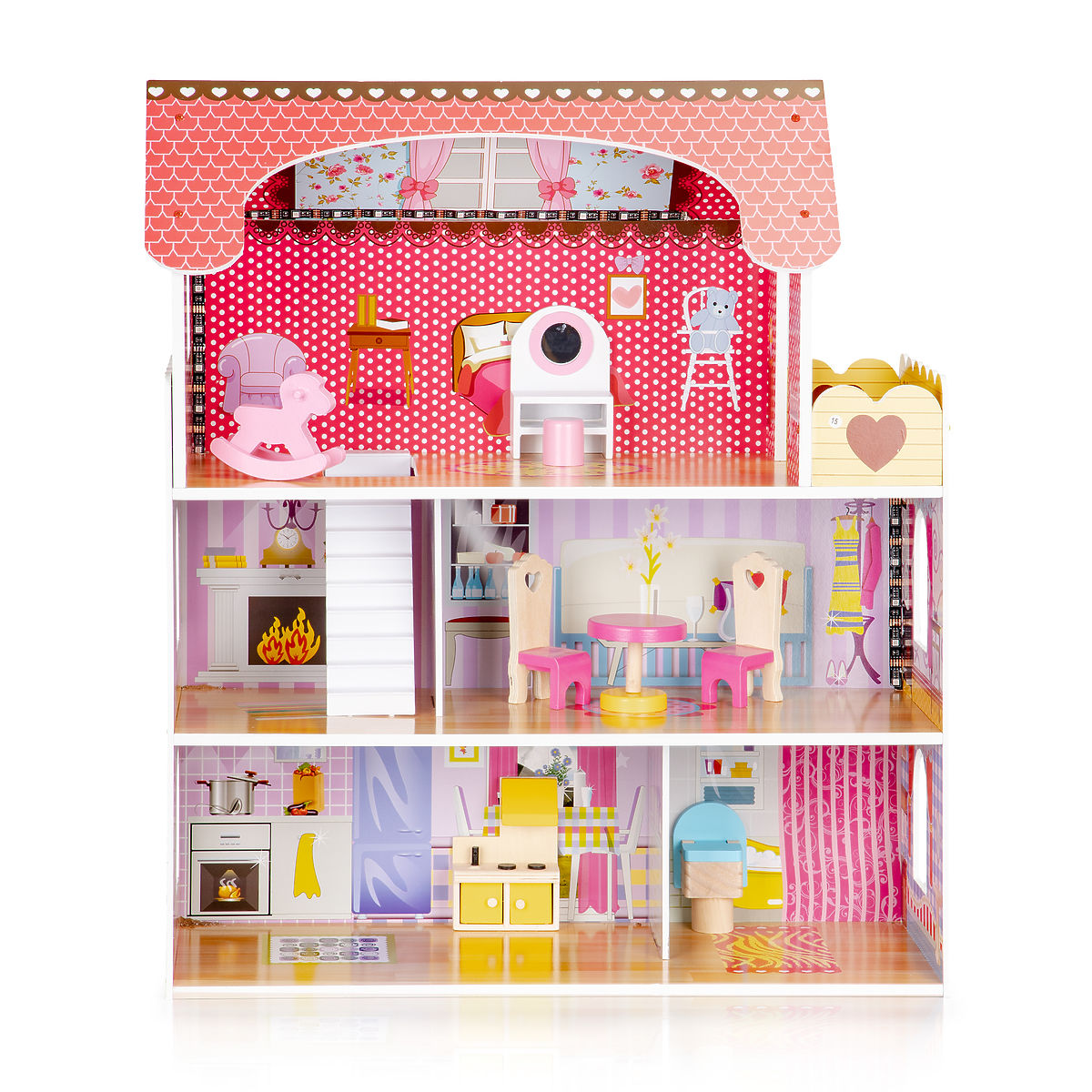 Drewniany domek dla lalek będzie spełnieniem marzeń każdej małej dziewczynki. Villa Madison oferuje dużo zabawy i jest wykonana z wysokiej jakości drewna bez ostrych krawędzi. Składa się z trzech kondygnacji i pięciu pokoi.