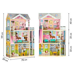Ten piękny drewniany domek Melissa z pewnością ucieszy każdą młodą damę. Cztery pokoje, trzy piętra, ruchoma winda i drewniane meble gwarantują godziny zabawy i przyjemności.
