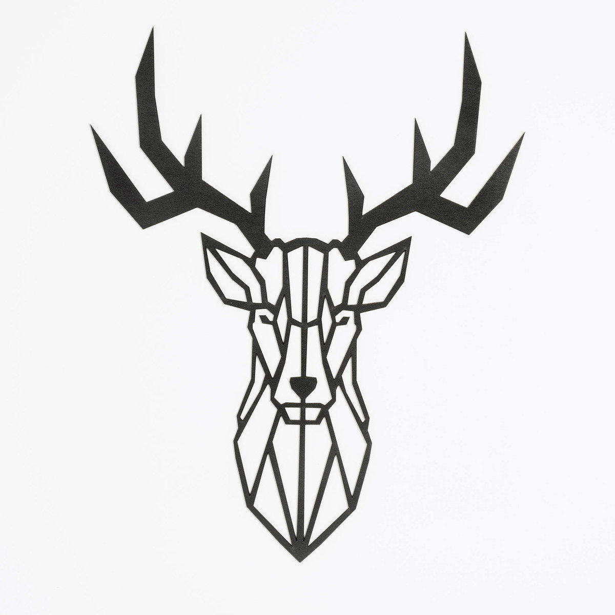 Drewniany obraz geometryczny w kształcie jelenia 1. Wisząca dekoracja ze sklejki nadaje się do pokoju dziecięcego w stylu skandynawskim.