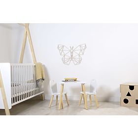 Drewniana figura geometryczna w kształcie motyla. Wisząca dekoracja ze sklejki nadaje się do pokoju dziecięcego w stylu skandynawskim.