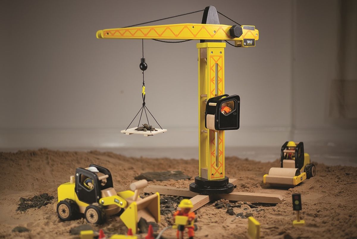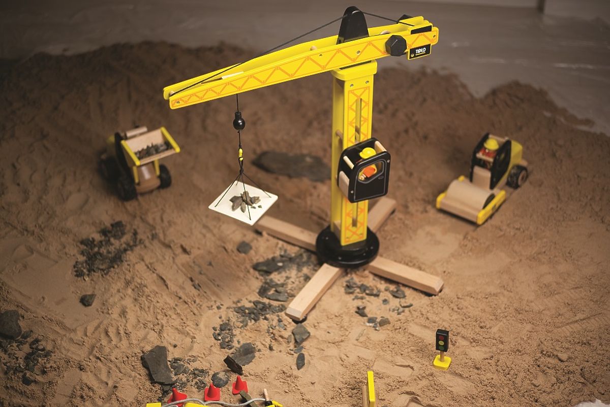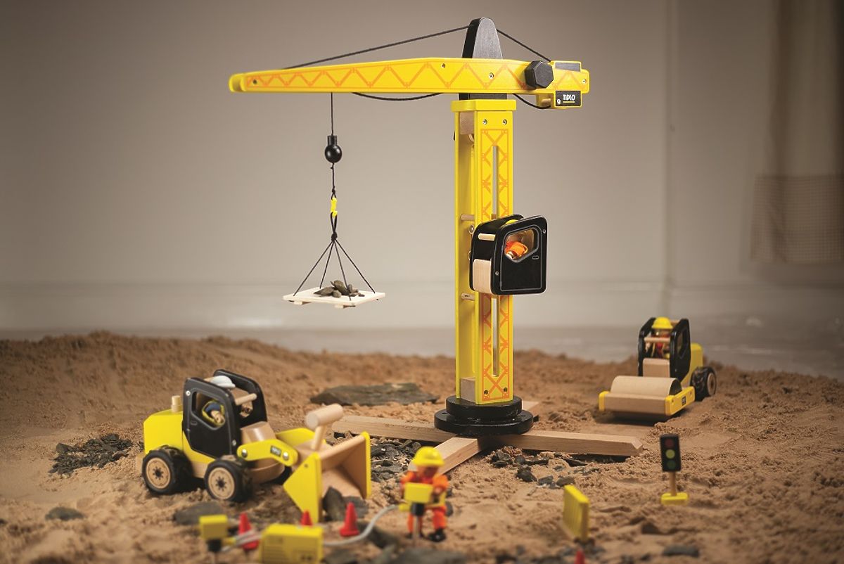 Nad placem budowy góruje dźwig, gotowy do przenoszenia wszelkich materiałów! Dźwig jest w pełni funkcjonalny, obraca się o 360 stopni z paletą na haku, która podnosi ładunek w górę i w dół. Kabina jest otwarta od góry, co umożliwia łatwe umieszczenie w niej pracownika. Kompatybilny z figurkami budowniczych Tidlo (nie są częścią zestawu). Wspiera dziecięcą kreatywność i wyobraźnię. Rozwija koordynację ręka-oko i małą motorykę. Wykonany z wysokiej jakości materiałów z odpowiedzialnych źródeł. Spełnia europejską normę bezpieczeństwa. Główne cechy: obrót o 360 stopni, paleta na haku, otwarta kabina, wspiera kreatywność i wyobraźnię, rozwija małą motorykę