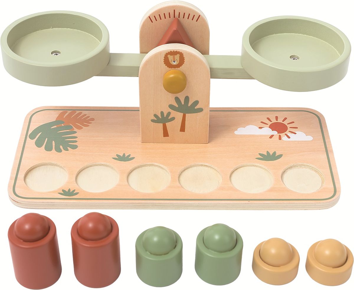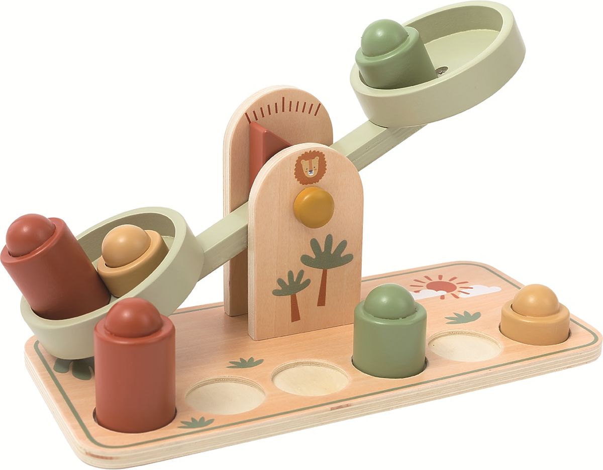 Kolorowa dziecięca waga szalkowa w pastelowych barwach z motywem safari to doskonała pomoc do pierwszego odkrywania świata ważenia i porównywania. Jest inspirowana pedagogiką Montessori i wspiera rozwój logicznego myślenia oraz małej motoryki. Dzięki sześciu odważnikom o trzech różnych masach (po dwa z każdej) dzieci uczą się rozpoznawać różnice w masie i samodzielnie badają, który przedmiot jest cięższy lub lżejszy. Czy pluszak jest cięższy od lalki? Porównujcie masy zabawek w dziecięcym pokoju lub drobnych przedmiotów w domu. Waga jest idealna do nauki przez zabawę w domu i w przedszkolu. Główne cechy: 7 elementów, waga szalkowa z 6 odważnikami, rozwija logiczne myślenie i małą motorykę, inspirowana pedagogiką Montessori, nauka przez zabawę, odpowiednia dla dzieci od 3 lat.