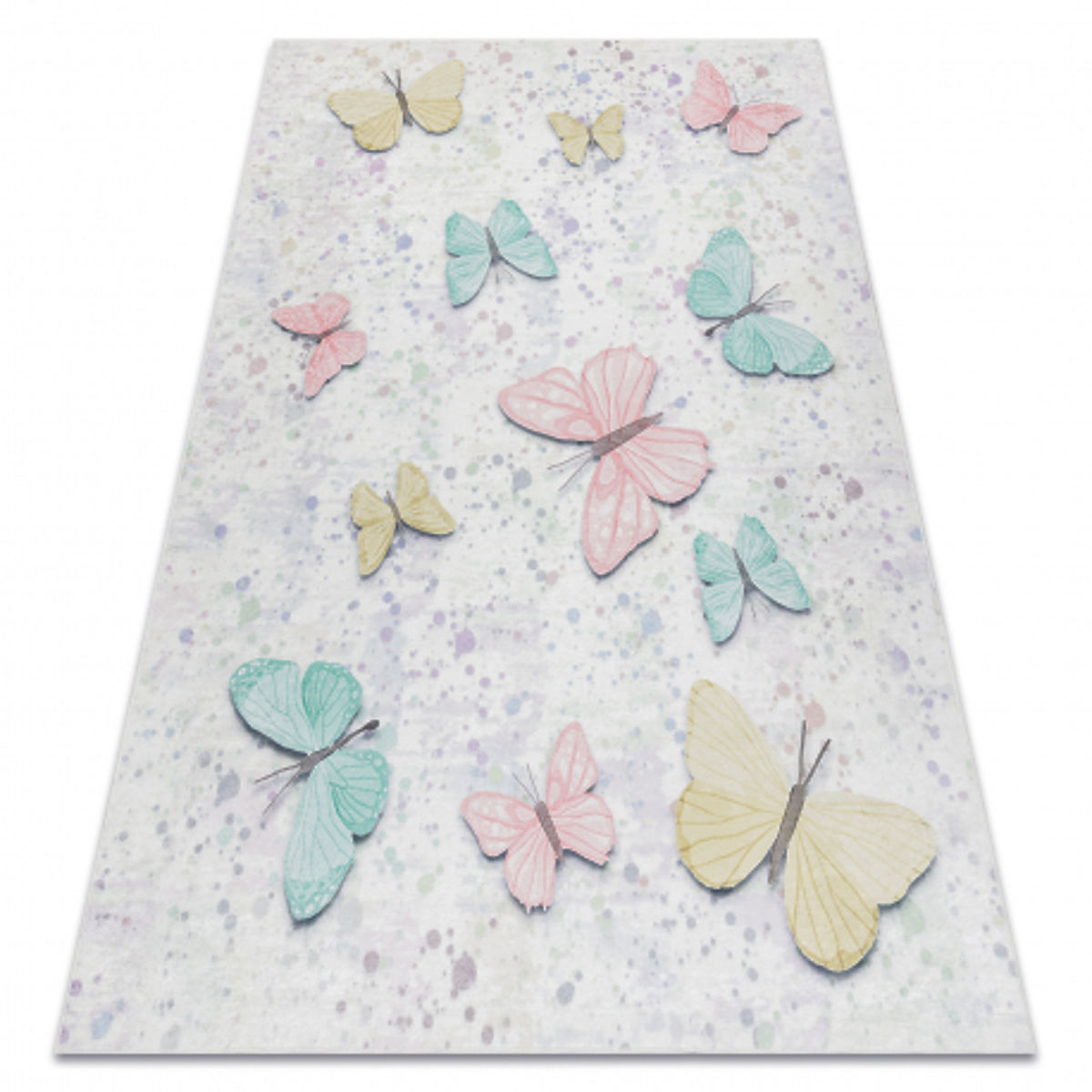 Prostokątny dywanik BAMBINO z motywem motyli, antypoślizgowy i łatwy w utrzymaniu. .. więcej
