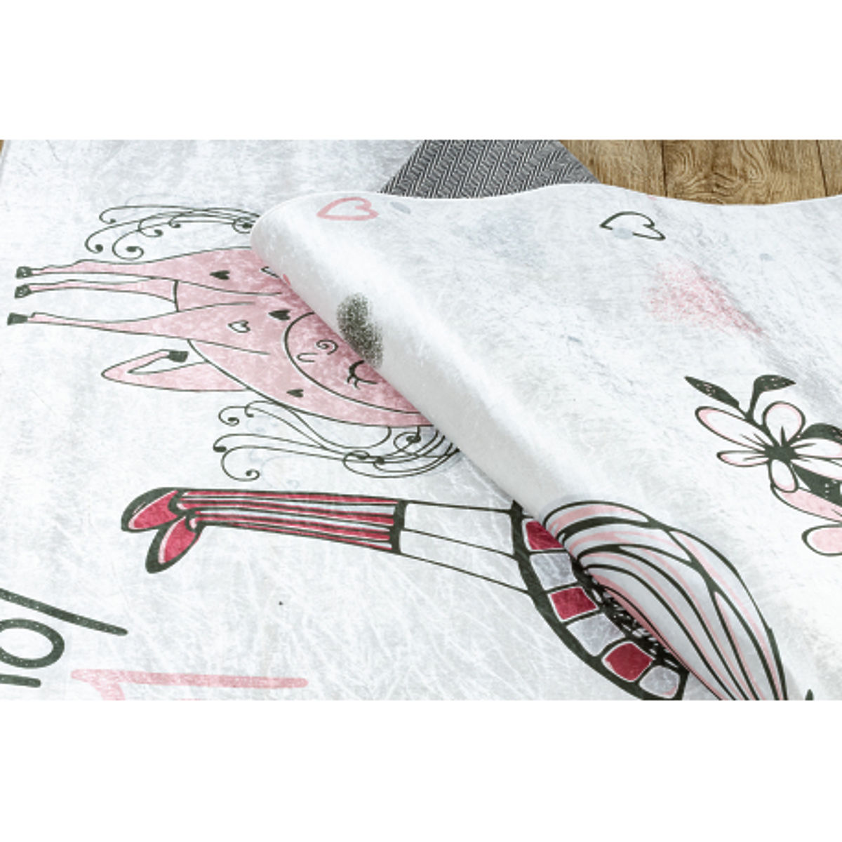 Dywanik z motywem dziewczynki i jednorożca, biało-różowy, antypoślizgowy. .. więcej