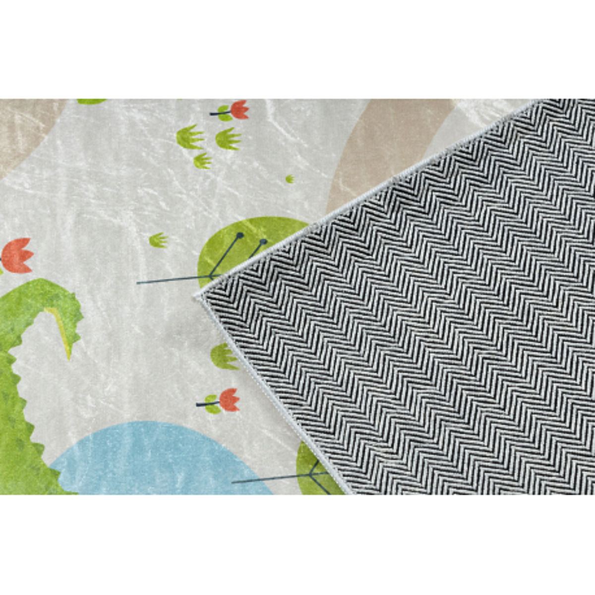 Stwórz dla swojego dziecka radosne i inspirujące miejsce pełne przygód z prostokątnym dywanikiem myjącym BAMBINO 50230, który łączy motyw zoo i miejskich uliczek. Połączenie beżowego i zielonego koloru nadaje dywanikowi przyjemny, zabawny wygląd, dzięki czemu doskonale pasuje do pokoju dziecięcego, sali zabaw czy przedszkola. Wesołe ilustracje zwierząt i dróg pobudzają wyobraźnię i zachęcają dzieci do kreatywnej zabawy. Dywanik wykonany jest w 100% z poliestru, który jest miękki w dotyku, trwały i bardzo łatwy w utrzymaniu. Grubość 5 mm zapewnia wygodne stąpanie, a waga 0,70 kg/m² czyni dywanik lekkim i łatwym do przenoszenia. Dużą zaletą jest możliwość prania w pralce, co ułatwia utrzymanie higienicznej czystości. Antypoślizgowa dolna warstwa dodatkowo zwiększa bezpieczeństwo podczas zabawy i zapobiega przesuwaniu się dywanika po podłodze.
