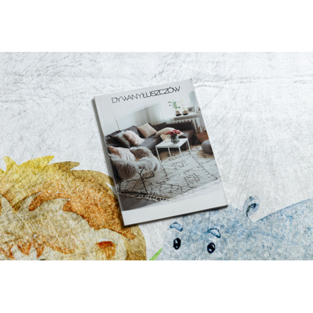 Stwórz swojemu dziecku kolorowy i zabawny kącik z okrągłym dywanikiem myjącym BAMBINO 54090 z motywem afrykańskich zwierząt. Połączenie białego i zielonego koloru oraz wesoły design wprowadzają do pokoju dziecięcego radosną i inspirującą atmosferę, idealną do zabawy, odpoczynku i kreatywnych zajęć. Dywanik wykonany jest w 100% z poliestru, który jest przyjemny w dotyku, trwały i łatwy w utrzymaniu. Dzięki grubości 5 mm i wadze 0,70 kg/m² jest lekki, wygodny i stabilny na podłodze. Praktyczną zaletą jest możliwość prania w pralce, co znacznie ułatwia utrzymanie dywanika w czystości i świeżości. Antypoślizgowa dolna warstwa zapewnia bezpieczeństwo podczas zabawy i minimalizuje ryzyko poślizgnięcia się.