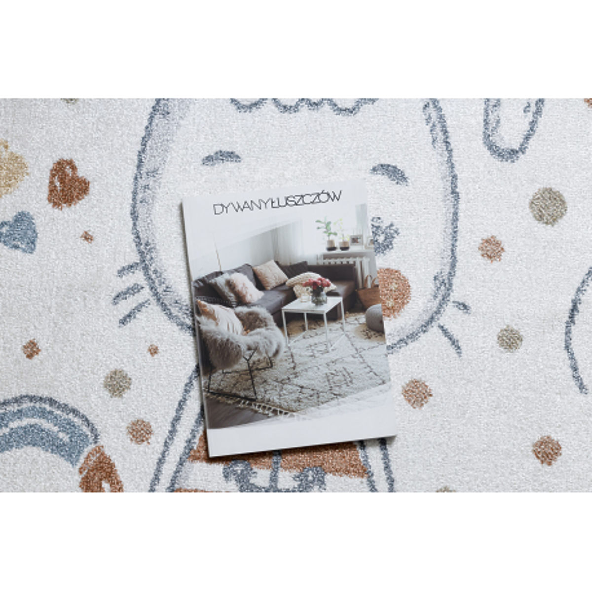 Uroczy okrągły dywan BONO 8441 Króliczek marynarz wniesie do dziecięcego pokoju magiczną atmosferę przygody i zabawy. Połączenie kremowego tła z niebieskimi detalami tworzy delikatny, uspokajający wygląd, który pięknie uzupełni zarówno chłopięce, jak i dziewczęce wnętrza.