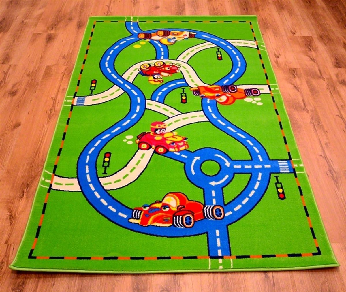 Dywan spodoba się wszystkim małym miłośnikom aut! Motyw toru wyścigowego ożywi każdy pokój dziecięcy. Dywan może służyć również do zabawy. Wystarczy wziąć do rączki autko i urządzić z kolegami wyścigi na torze!