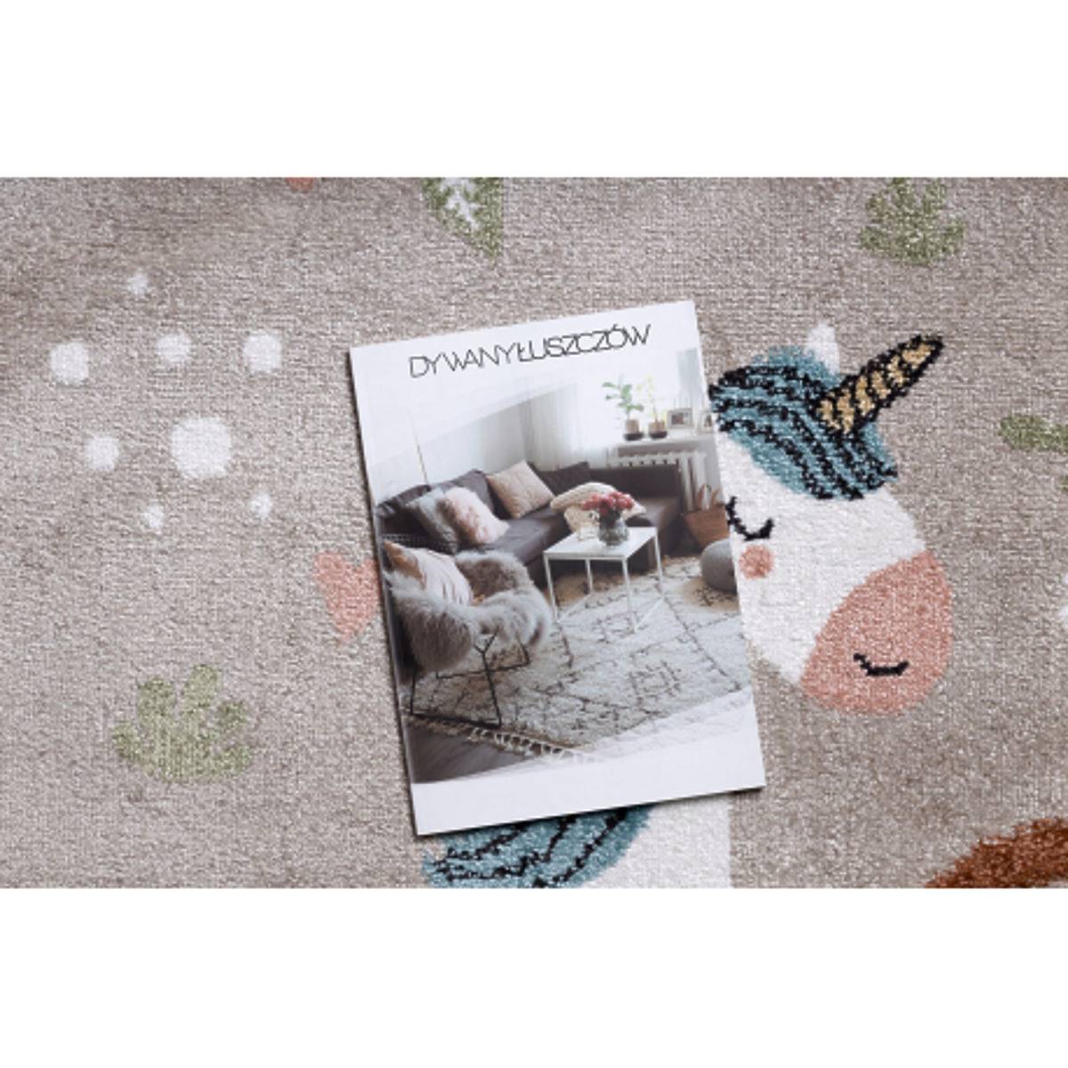 Dywan z jednorożcem i tęczą w beżowym kolorze do pokoju dziecięcego. .. więcej
