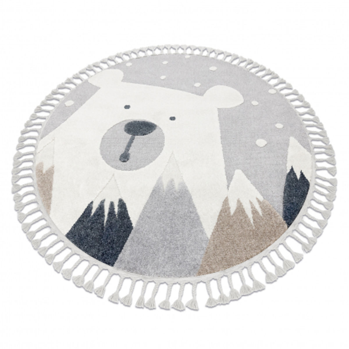 Banaby.pl » Meble dziecięce / Dywany / Dywany pojedyncze / Dywan okrągły YOYO EY81 szaro / biały - Niedźwiedź, góry dla dzieci, strukturalny, sensoryczny Frędz