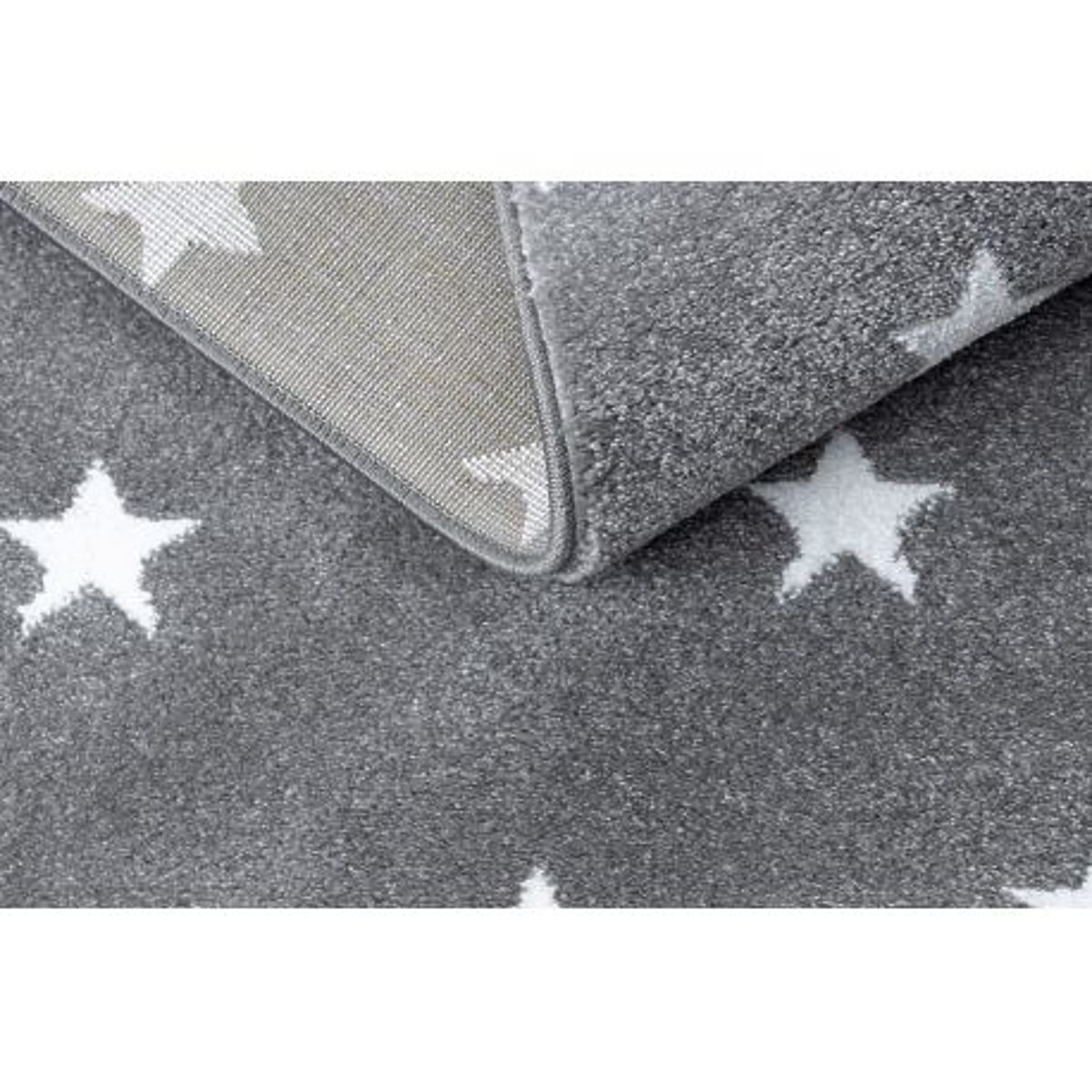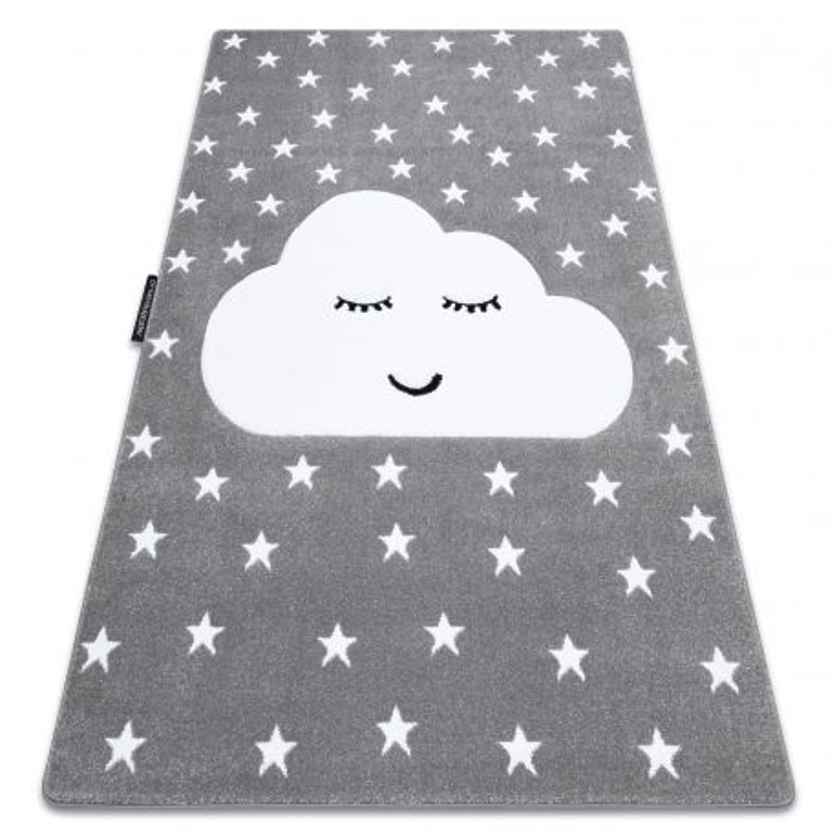 Dywan z motywem chmurek i gwiazdek w szarym kolorze. .. więcej