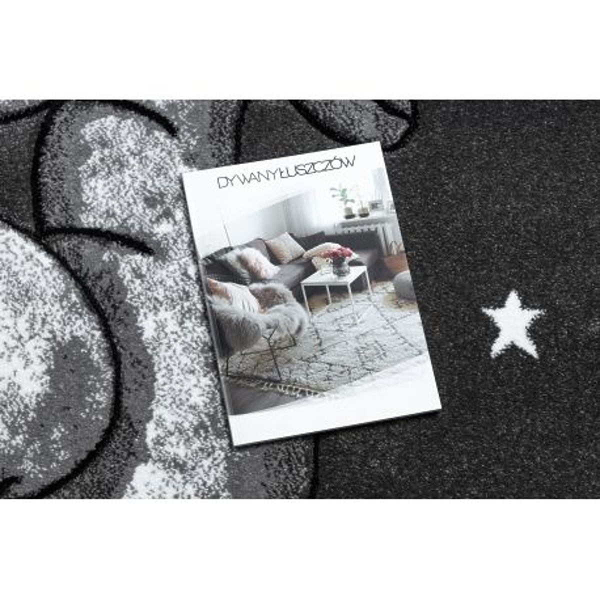 Dywan z motywem słonika i gwiazdek, szary, 13 mm grubości. .. więcej