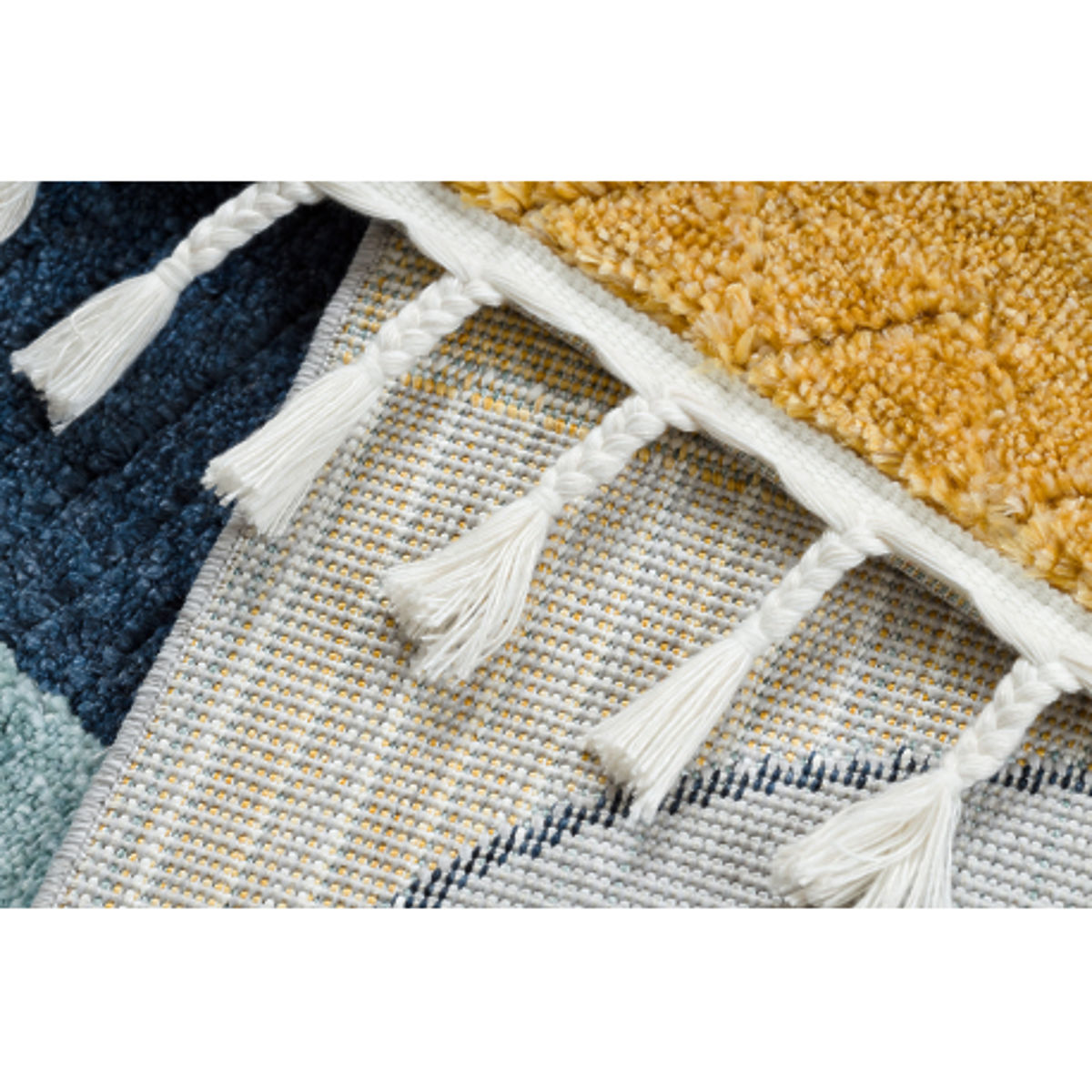Dywan ma strukturalną powierzchnię z frędzlami, która wspiera wrażenia dotykowe i wizualne oraz stymuluje dziecięcą kreatywność i ciekawość. Dzięki wysokiej jakości przędzy poliestrowej dywan jest miękki, lekki i łatwy w utrzymaniu. Grubość dywanu waha się między 8 mm a 16 mm, co zapewnia komfort podczas zabawy i odpoczynku. Waga zależy od wzoru i waha się między 2,0–2,50 kg/m².