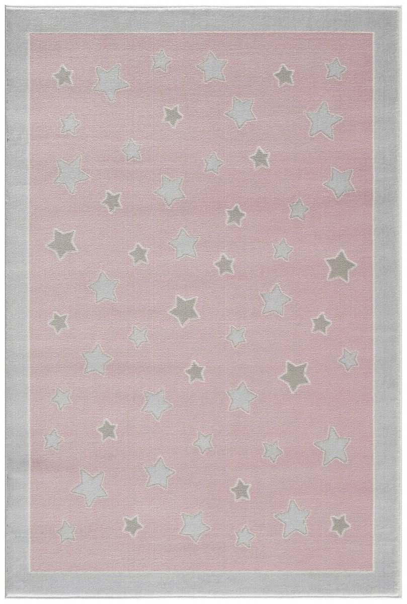 Luksusowy różowo-szary dywan z gwiazdami niemieckiej firmy LIVONE do pokoju dziecięcego lub studenckiego dla dziewczynek. Funkcje: - przyjemny w dotyku - .. więcej