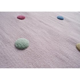 Luksusowy różowy dywan w kolorowe kropki niemieckiej firmy LIVONE spodoba się każdemu członkowi rodziny.