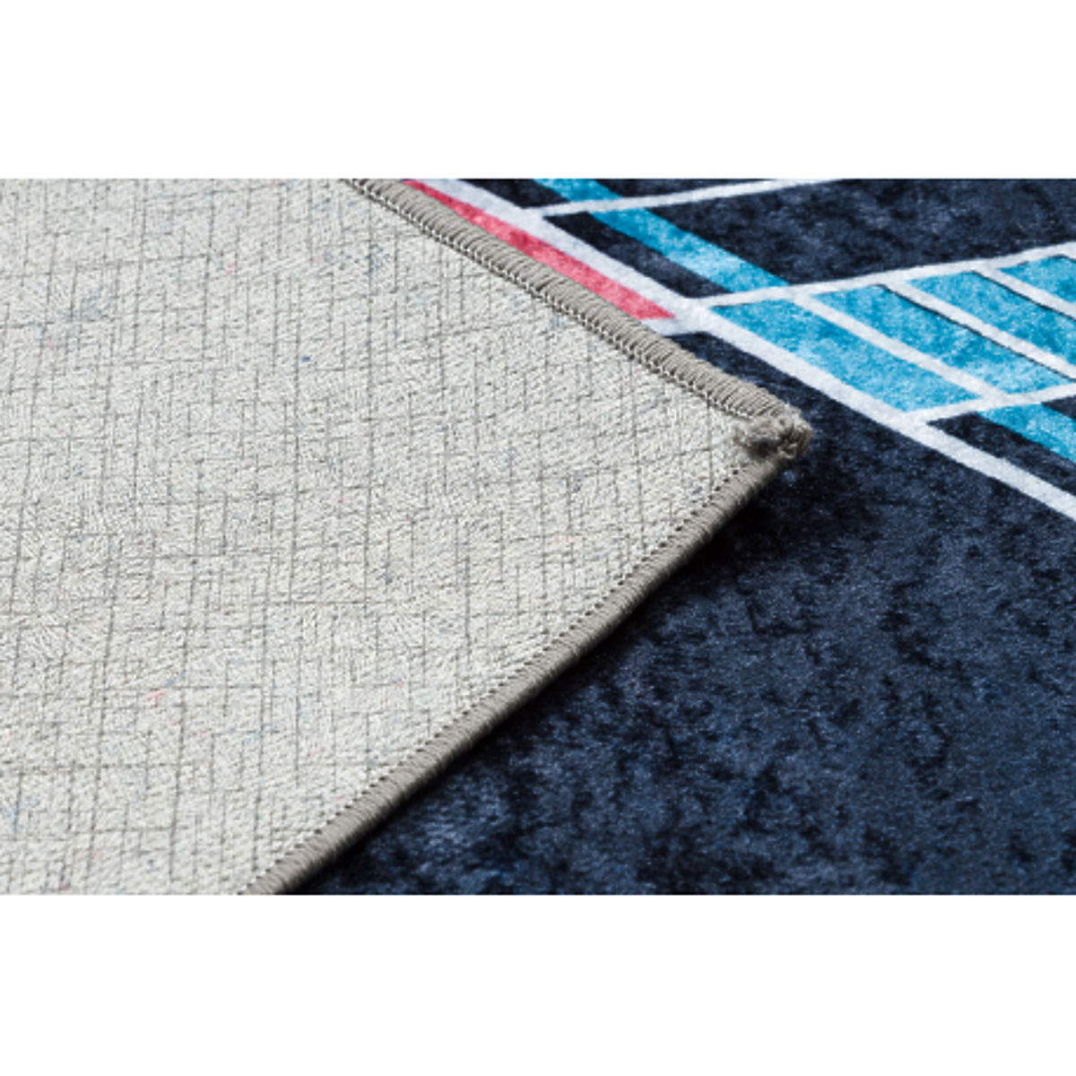 Dywanik jest antypoślizgowy i można go bez problemu prać w pralce, co zapewnia łatwą pielęgnację i higieniczne środowisko. Dzięki poliestrowemu materiałowi jest również łatwy do czyszczenia i odporny na zabrudzenia. Z grubością około 5 mm zapewnia komfort i łatwą obsługę.