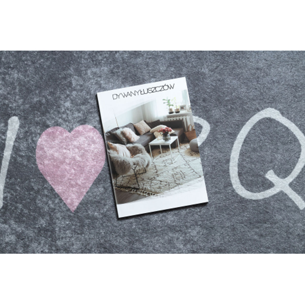 Ucz się i baw jednocześnie z prostokątnym dywanikiem JUNIOR z motywem alfabetu. Szare wykonanie z kolorowymi literami wspiera dziecięcą wyobraźnię, naukę i kreatywną zabawę. Dywanik jest miękki i przyjemny w dotyku, bezpieczny dzięki antypoślizgowej spodniej stronie i łatwy w utrzymaniu – można go prać w pralce. Idealny do pokoju dziecięcego, bawialni lub kącika do nauki.