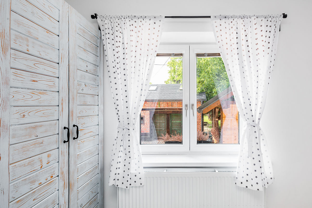 Banaby.pl » Dekoracje / Firanki i zasłony / Zasłony / Zasłony dla dzieci Białe z szarymi gwiazdkami 19