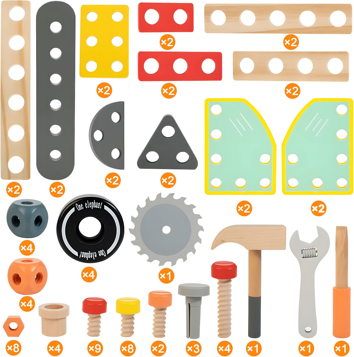 ROZWÓJ I ZABAWA W JEDNYMUżywanie narzędzi i składanie klocków rozwija u dzieci umiejętności motoryczne, koordynację ręka-oko, zdolności rozwiązywania problemów oraz stymuluje ich wyobraźnię i kreatywność. To doskonała zabawka, która bezpiecznie wspiera rozwój małych majsterkowiczów.