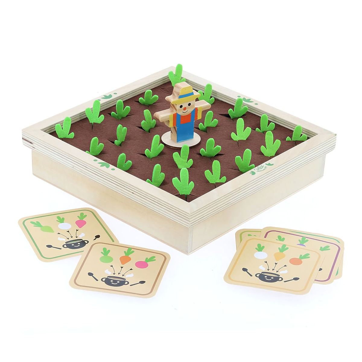 Przygotuj zupę jarzynową pełną jaskrawych kolorów. Ale uważaj na białego królika, on ukradnie twoje składniki! W grę można grać jak w prostą grę planszową nawet z mniejszymi dziećmi, a karty z przepisami urozmaicają zabawę. Kto pierwszy uzupełni przepis i ugotuje zupę? Czy spróbujesz uzupełnić więcej przepisów, czy może urozmaicisz grę zdobywając punkty za poszczególne rodzaje warzyw? Elementy gry łączą mocną sklejkę, lite drewno lub filc i są przyciągające wzrok, tematycznie zdobione. Gra ma 2 warianty, Pexeso i Zróbmy zupę. Główne cechy: Miejsce do zabawy dla 2-6 graczy, 24 elementy do gry i 7 kart z przepisami 2 warianty gry, odpowiednie także dla mniejszych dzieci Unikalny i atrakcyjny wygląd Dokumentacja: Instrukcja do gry Zbieranie plonów w ogrodzie (CZ) Instrukcje do gry Zbieranie plonów ogród (SK)