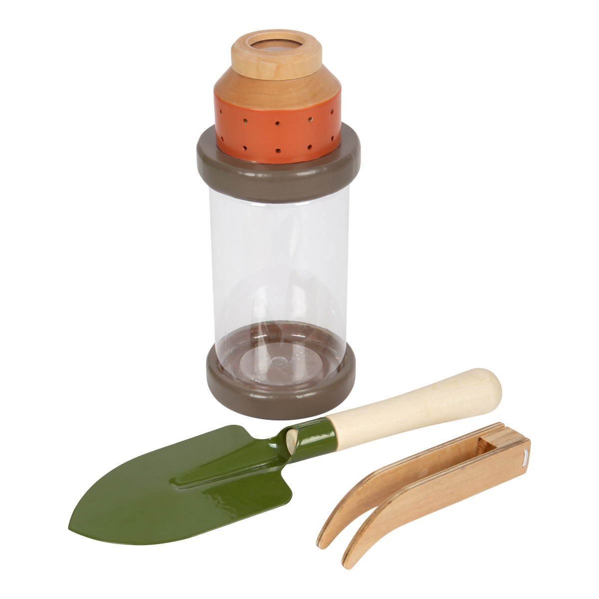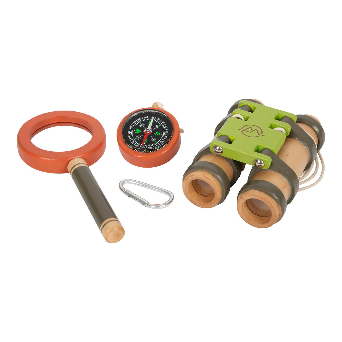 Dla miłośników przygód! Ten wytrzymały plecak stanie się idealnym towarzyszem podczas podróży na łonie natury. Z łatwością pomieści cały sprzęt: pojemnik na owady z zakręcanym wieczkiem i wbudowaną lupą, drewnianą lornetkę, siatkę na owady z teleskopowym kijem, kompas na sznurku, lupę, pęsetę, łopatkę, karabińczyk. Praktyczną cechą plecaka jest to, że można go szeroko otworzyć dzięki zamkowi błyskawicznemu, ma regulowane paski na ramiona i wiele pętli, na które można zawiesić sprzęt. Dzieci będą się nim cieszyć podczas wycieczek, wypraw, ekspedycji, a dzięki wyposażeniu mogą badać i odkrywać nowe rzeczy w ogrodzie, lesie lub na łące. Widoczne drewno, zaokrąglone krawędzie i kolory natury to cechy zabawek z serii „Discover”. Główne cechy: wytrzymały plecak dla młodych odkrywców z pętlami, regulowane paski na ramiona, w zestawie sprzęt odkrywcy, pojemnik na owady z wieczkiem, siatka na motyle do przymocowania do plecaka, plecak z szerokim zamkiem, ładny design i zaokrąglone krawędzie, pasuje do innych produktów z serii „Discover”.