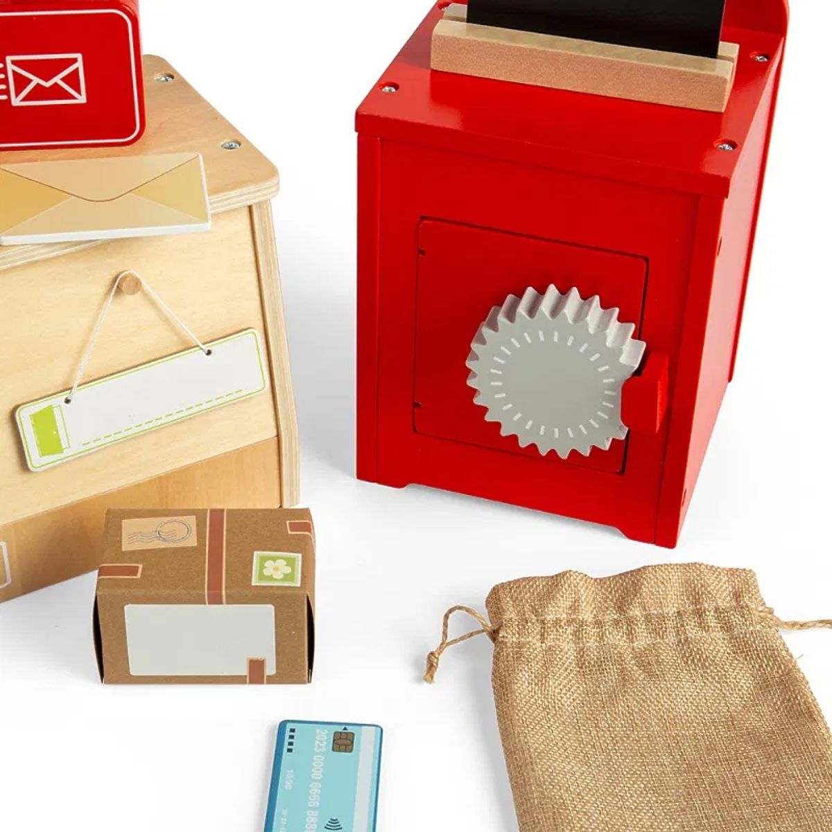 Co się robi na poczcie? Mali listonosze mogą przeżyć pracowity dzień, sortując i dostarczając pocztę z własnym zestawem pocztowym! Zestaw zawiera wszystko, czego potrzebuje prawdziwy listonosz do swojej pracy: skrzynkę pocztową, kasę, wagę, worek na paczki, paczki, listy, pocztówki, pieczątkę i inne. Zabawa w odgrywanie ról doskonale rozwija dziecięcą wyobraźnię, kreatywność, umiejętności społeczne i rozwój języka. Role pracowników poczty lub klientów również poprawią ich umiejętności komunikacyjne poprzez ćwiczenie mówienia, słuchania, czytania i pisania. Zestaw wykonany jest z najwyższej jakości i zrównoważonego drewna z certyfikatem FSC® i pomalowany nietoksycznymi farbami i lakierami. Spełnia aktualne europejskie normy bezpieczeństwa. Zawartość opakowania: skrzynka pocztowa z tablicą, kasa, waga, worek, paczki, listy i pocztówki, karta kredytowa i terminal, pieczątka, paragony. Główne cechy: 19 elementów, rozwija wyobraźnię, kreatywność, umiejętności społeczne, wspiera zabawę w odgrywanie ról, wykonane z drewna z certyfikatem FSC®, odpowiednie od 3 roku życia. Marka i certyfikat FSC® (Forest Stewardship Council) gwarantuje, że drewno, z którego produkt został wykonany, nie zostało pozyskane nielegalnie i pochodzi z lasów zarządzanych w sposób zrównoważony lub bliski naturze, w którym przestrzegane są surowe wymagania środowiskowe i społeczne. Znak FSC® na produkcie oznacza, że poprzez zakup pomagasz chronić lasy i wspierasz zrównoważone, odpowiedzialne lub bliskie naturze zarządzanie, dzięki któremu nasze lasy są stabilniejsze, zdrowsze, mają naturalny skład gatunkowy i lepiej opierają się negatywnym skutkom zmian klimatycznych.