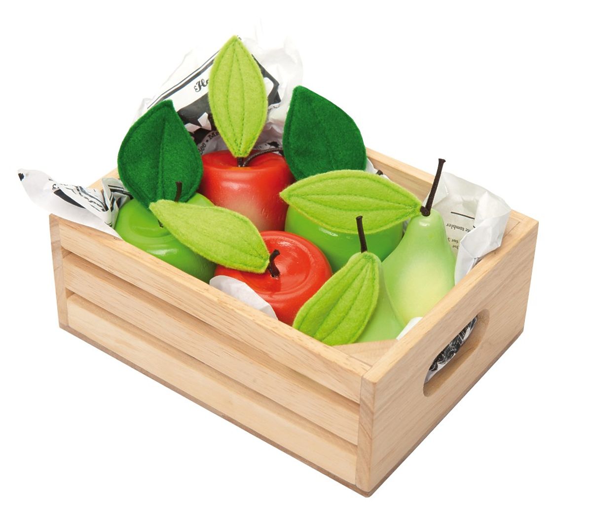 W zestawie skrzynka z owocami i torba