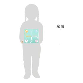 Wymiary: 20x20x1 cm Wymiary figurki: 4 cm, Ø 1,5 cm Wiek: 4+ Materiał: drewno