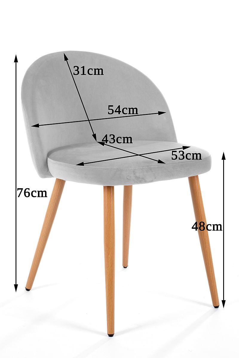 Krzesło tapicerowane welurem z metalowymi nogami w kolorze bukowym. .. więcej