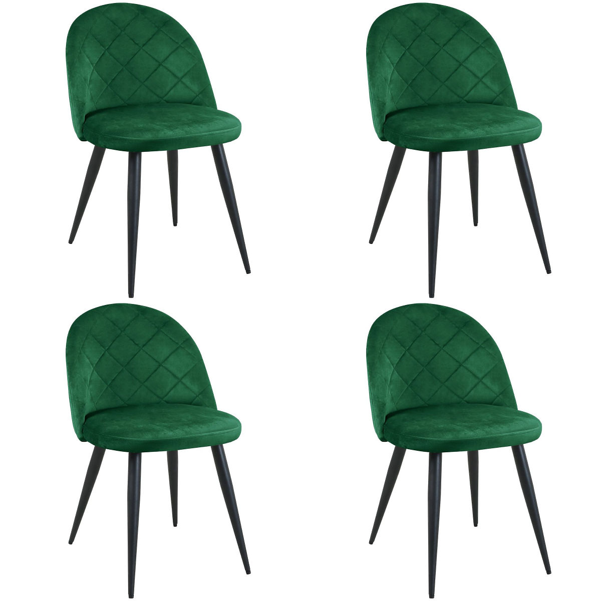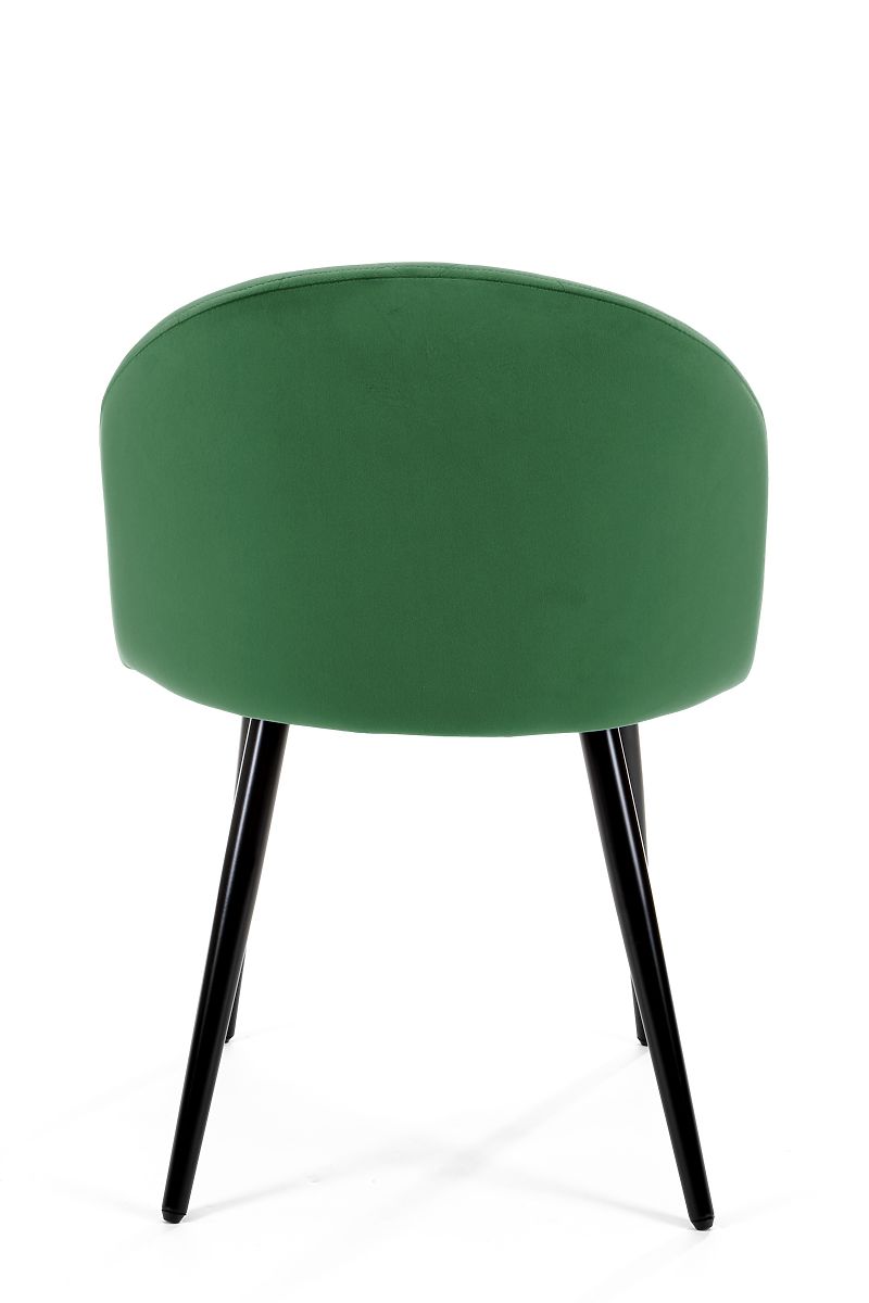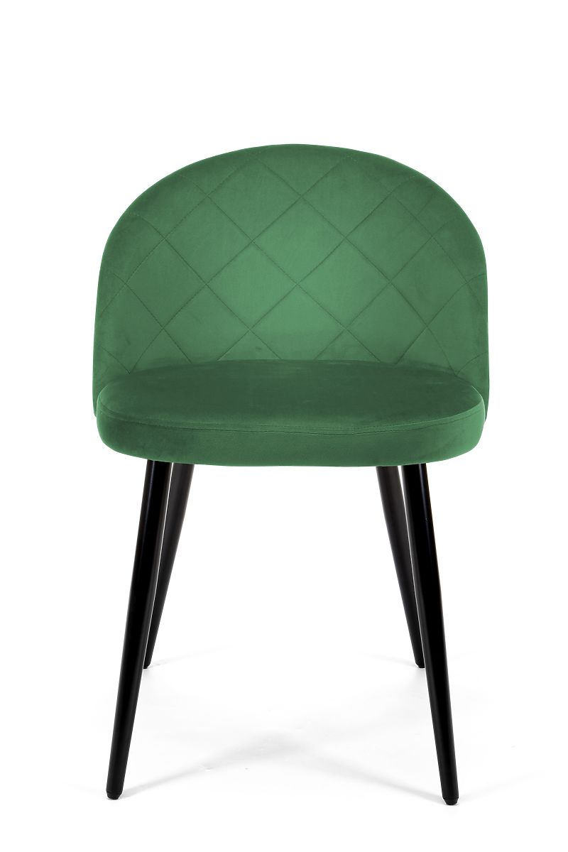 Zestaw aksamitnych krzeseł znajdzie wiele zastosowań w nowoczesnych aranżacjach. Doskonale sprawdzi się jako krzesła do jadalni, biura, ale także do salonu kosmetycznego czy fryzjerskiego. Produkt ma tapicerkę z miękkiej aksamitnej tkaniny, zaokrąglone oparcie zdobione pikowanym szyciem oraz metalowe nogi w czarnym kolorze.